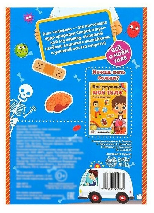 Тело человека - это настоящее чудо природы! Скорее открывай эту книжку, выполняй веселые задания с наклейками и узнавай все его секреты!