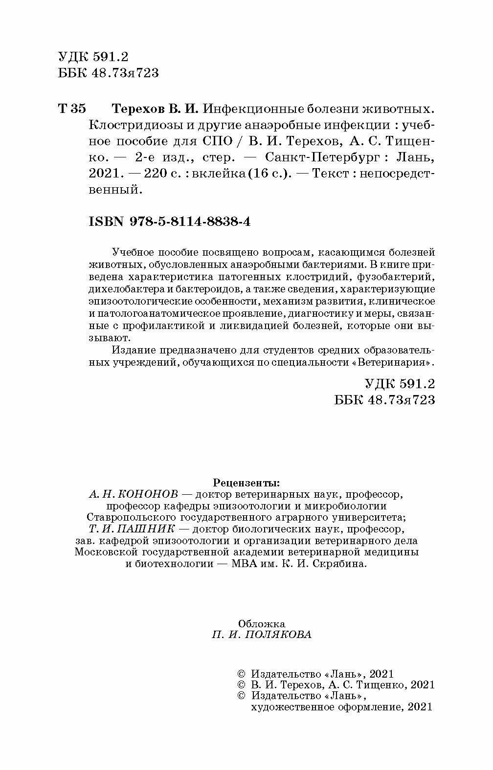 Инфекцион.болезни животн.Клостридиозы и др.СПО.2из (Терехов Владимир Иванович, Тищенко Александр Сергеевич); Лань, 2021