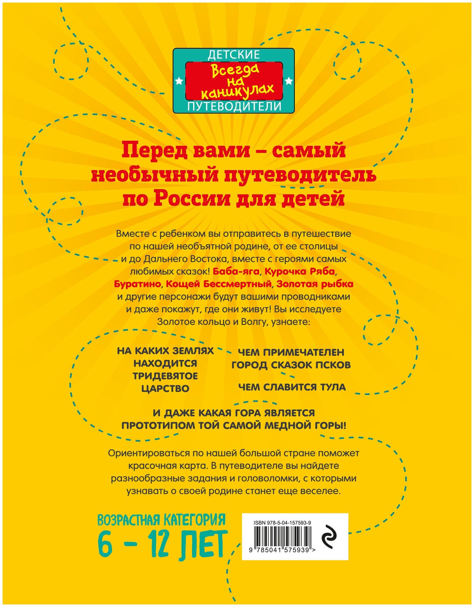 Перед вами — самый необычный путеводитель по России для детей. Вместе с ребенком вы отправитесь в путешествие по нашей необъятной родине от ее столицы и до Дальнего Востока вместе с героями самых любимых сказок! Баба Яга, Курочка Ряба, Буратино, Кощей Бессмертный, Золотая рыбка и другие персонажи будут вашими проводниками и даже покажут, где они живут!