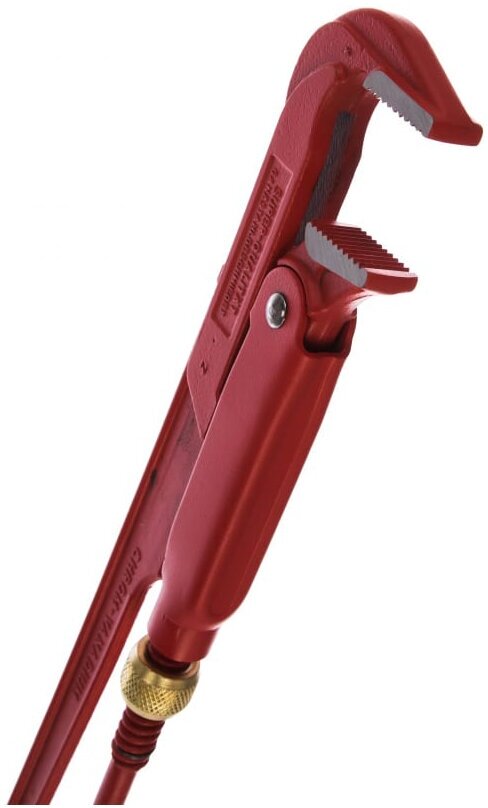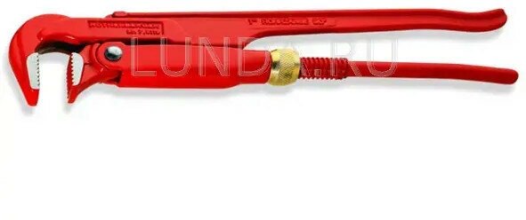Шведский газовый ключ 90° 2" Rothenberger Шведский газовый ключ 90° изготавливается из хромованадиевой стали методом ковки и штамповки. Его отличительной особенностью считается 90° градусный наклон угла губок. Конструкцией этого газового ключа предусмотрен узкий зев, шлифованные губки, надежная гильза, удобная регулировочная гайка. Ключ покрашен в приметный ярко-красный цвет. Узкий зев, наклон угла губок 90°, узкие шлифованные губки.