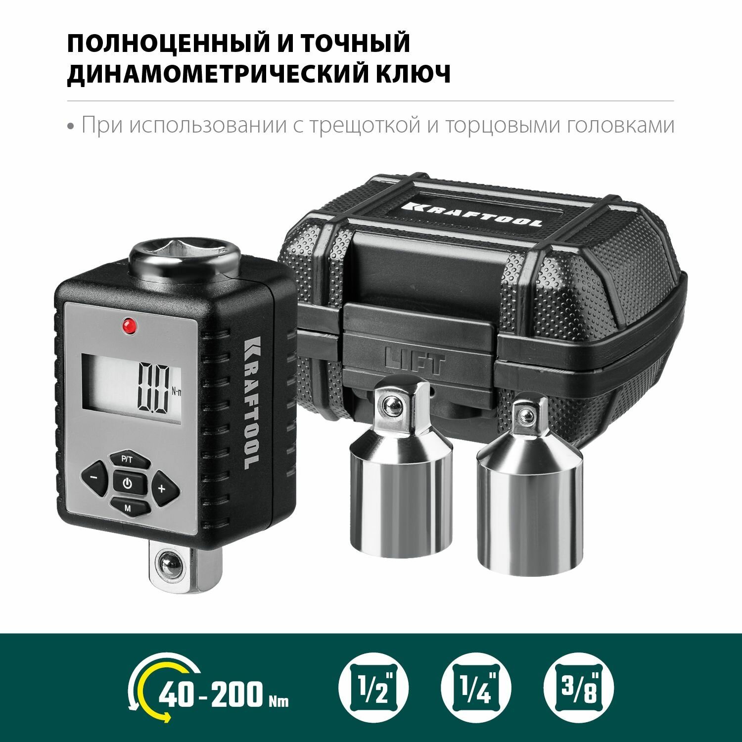 KRAFTOOL GRAND, 1/2?, 40 - 200 Н·м, динамометрический адаптер с переходниками (64044-200)