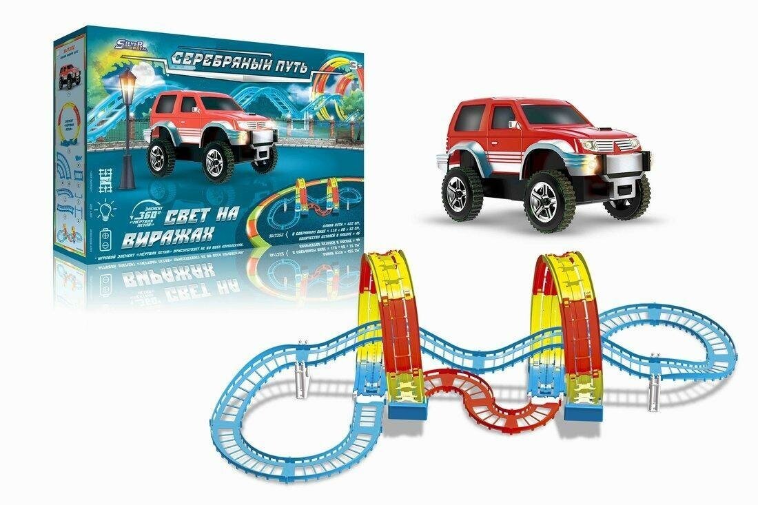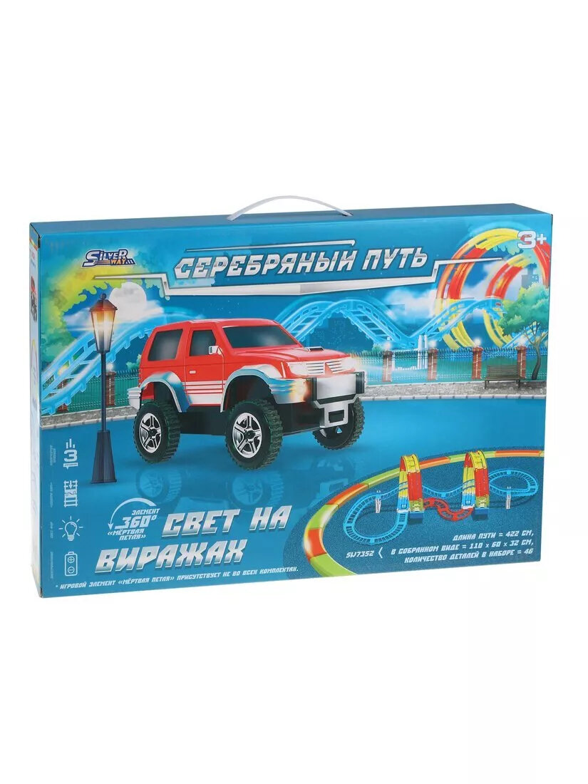 В комплект входит 39 деталей для сборки трёхуровневой автодороги (в том числе 2 элемента мёртвая петля, машинка), на которой можно будет устраивать самые настоящие гонки.