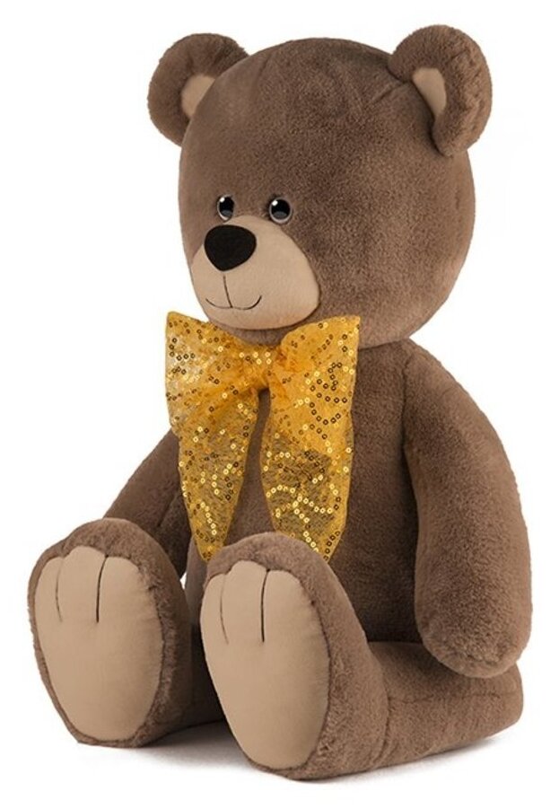 Скромный мишка Терри с шоколадной шерсткой растопит сердце даже взрослого, а уж дети придут в полный восторг при виде этого огромного плюшевого добряка. Сегодня Терри нарядился в золотой бант, расшитый пайетками, чтобы стать тем, кто будет каждый день вызывать у вас и ваших детей улыбку. Разве можно сохранять серьезность при виде этой мордашки?