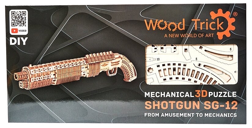- Механическая деревянная сборная модель Wood Trick «Дробовик SG-12 Shotgun»