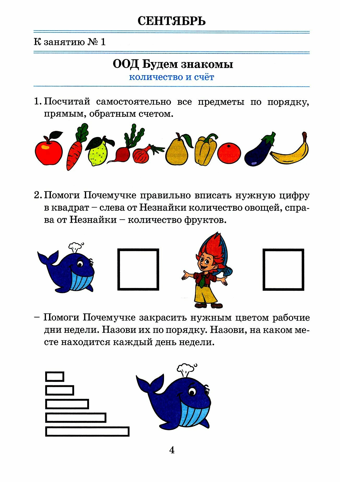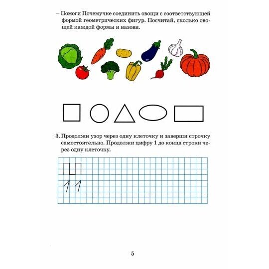 Серия рабочих тетрадей по математике является приложением к практическому пособию «Реализация содержания образовательной деятельности» образовательной области Познавательное развитие (ФЭМП) в работе с детьми соответствующего возраста. Выполняя практические задания, дети совершенствуют свои знания в изучении окружающего мира через пространственные, временные и количественные отношения, его величину и форму, систематизируют познания и умения в области логических размышлений и решений элементарных арифметических задач. Задания в тетрадях составлены по принципу расширения и усложнения от возрастной группы (2-3 лет) до возрастной группы (6-7 лет). Структура тетради, начиная с возраста от 3 до 4 лет и старше, имеет обязательным элементом счет (в разных его вариациях) в соответствии с возрастными возможностями ребенка и работу в клетке простой тетради (рисование, обводка, печатание геометрических фигур, линий).Тетрадь рассчитана на совместную работу взрослых и детей. Она предназначена для работы в детских дошкольных учреждениях, но может быть использована как самостоятельные мини-игры с одним ребёнком (например, дома с мамой или с психологом в детском саду) или подгруппой детей.