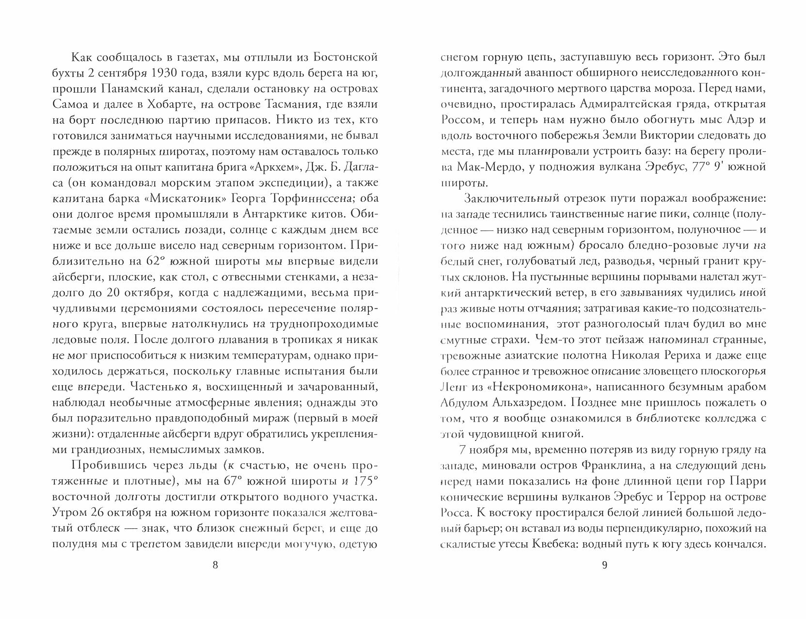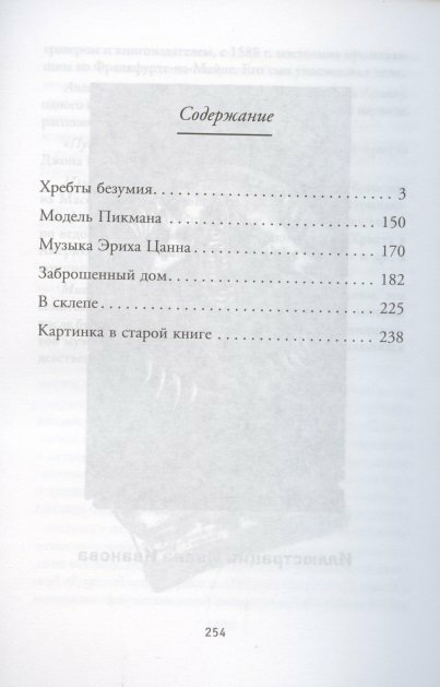 "Хребты безумия" одно из любимых произведений автора. Повествование идёт от первого лица, как и во многих рассказах автора. Погружение стопроцентное, читаешь на одном дыхании. Остолтные рассказы меньше по объёму, но не уступают по привлекательности. Читается легко, местами жутко и страшно!