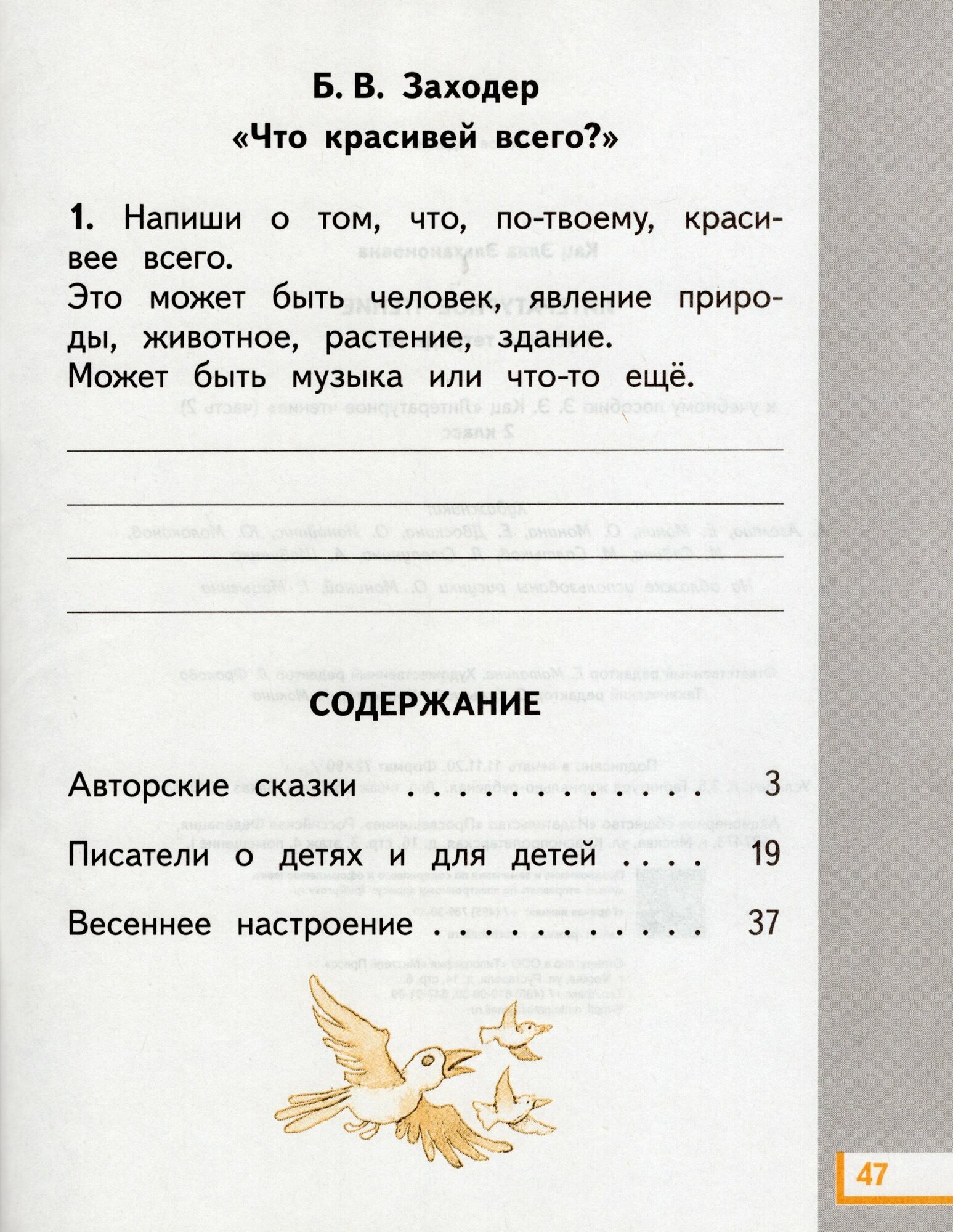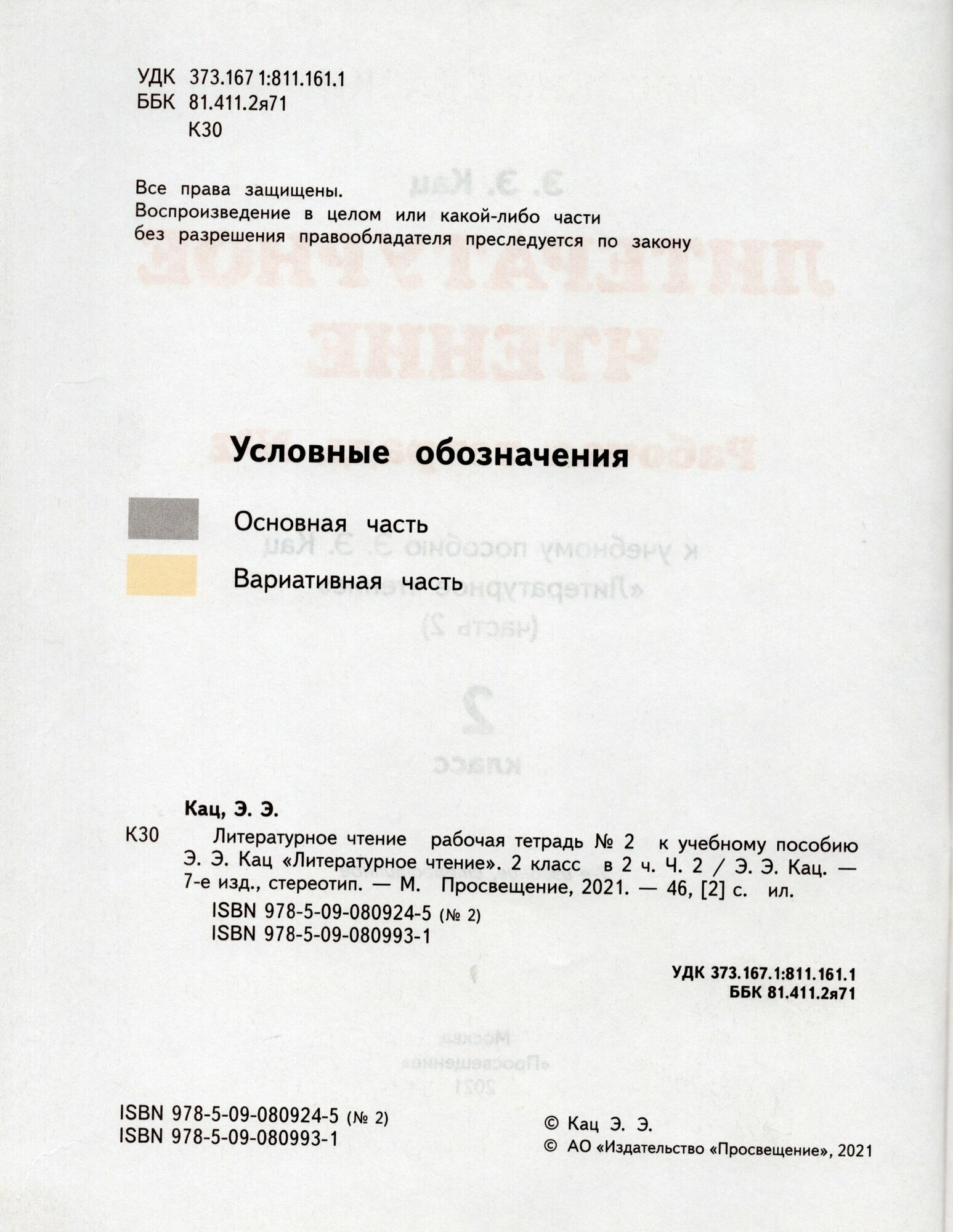 Рабочие тетради по "Литературному чтению" для 2 класса написаны Э.Э. Кац, учителем с сорокалетним педагогическим стажем, лектором Института повышения квалификации учителей, автором УМК по литературному чтению для начальной школы. Соответствует федеральному образовательному стандарту, одобрены Российской академией наук и Российской академией образования, рекомендованы Министерством просвещения Российской Федерации.