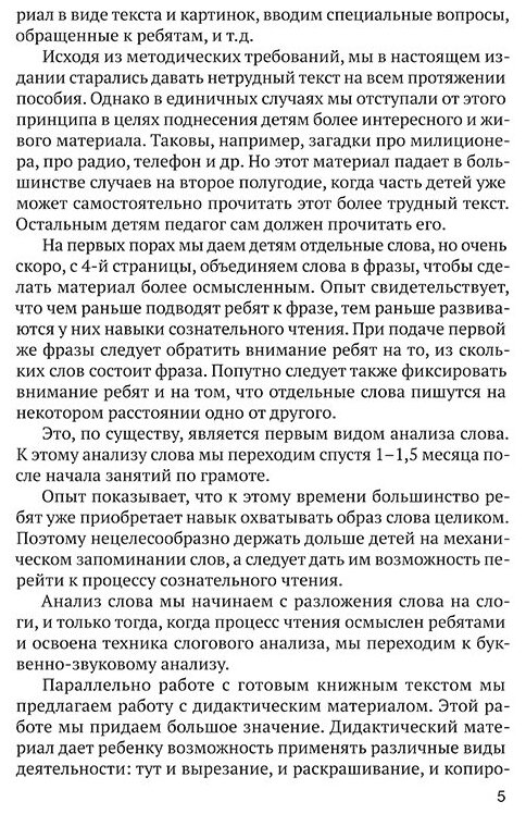 Перед вами и книга, с помощью которой ваш ребенок быстро научится читать и грамотно писать, и методическое пособие по тому, как самостоятельно и эффективно заниматься с ним грамотой. Чтобы ученику было интересно и легко осваивать материал, в издании сделаны красивые и понятные иллюстрации, а слова и фразы для тренировки напечатаны крупно и четко. Задания усложняются к концу книги: сначала ребенок читает простые словосочетания и печатный шрифт, затем — тексты из нескольких предложений, написанные каллиграфическими буквами. А чтобы работать с учеником было проще, составители подготовили методический план занятий с подробными практическими советами по тому, как лучше всего работать с материалом. Издание пригодится как учителям начальных классов, так и родителям, которые занимаются с детьми дополнительно.