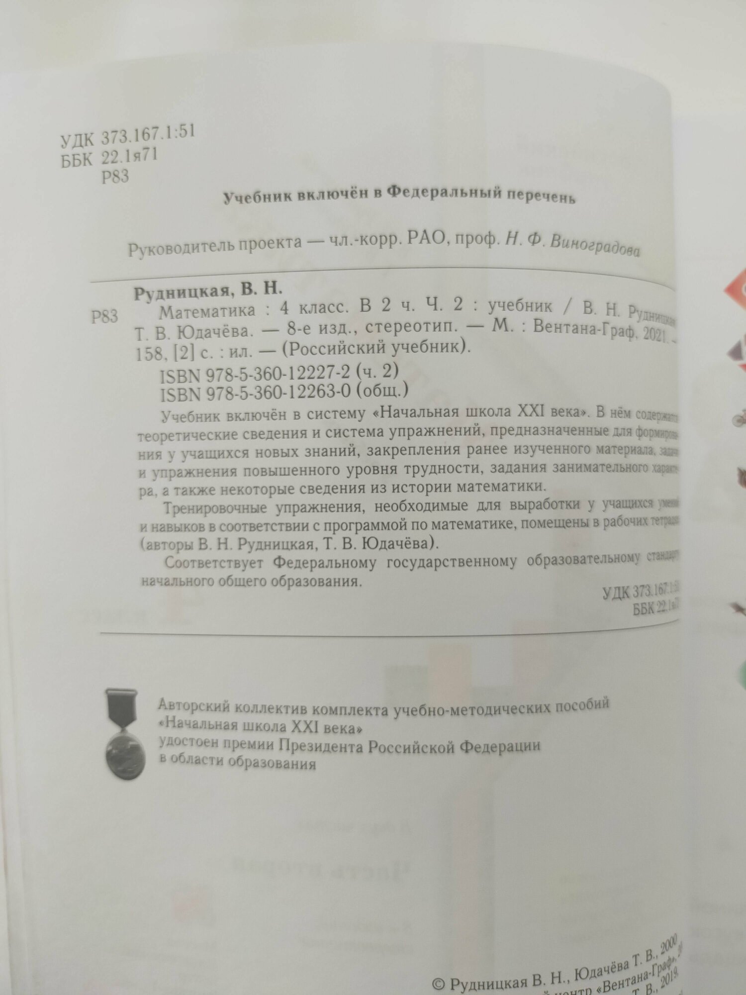 Сервис сравнения цен СкидкаГИД предлагает сравнить цены на товар «Книга: Математика 4 класс Учебник В двух частях Часть вторая (Рудницкая Виктория Наумовна); Вентана-Граф, 2021»
