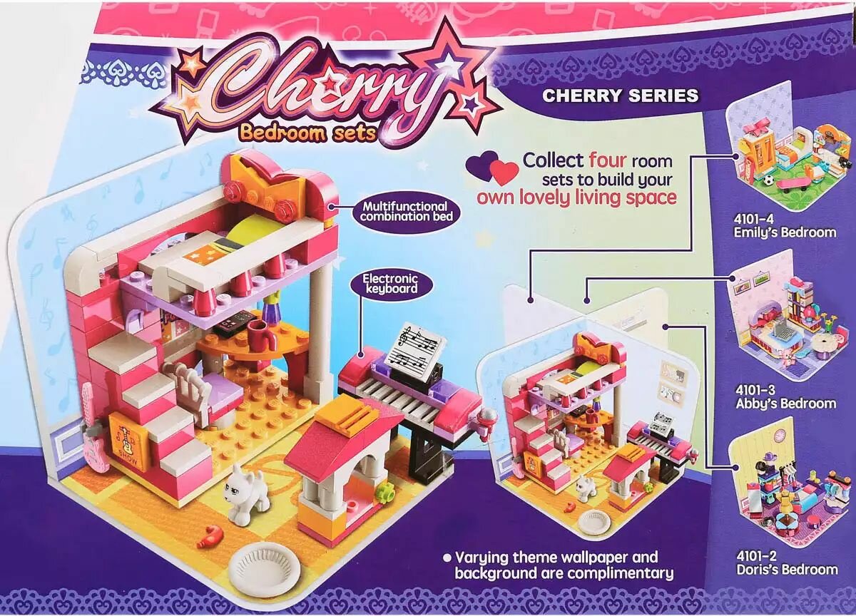 С конструктором "Спальня Черри" серии "Черри"девочке будет интересно играть, создавая интересные и милые сюжеты. С набором ребенок сможет сконструировать модную комнату девочки. Эта комната -для творческой личности, которая любит играть на синтезаторе и электрогитаре. У девочки есть домашнее животное. Особенности: -118 деталей -фигурки девочки и домашнего питомца -детали продуманы до мельчайших подробностей -все детали легко и плотно соединяются между собой -разнообразные аксессуары Игра с конструктором "Спальня Черри" способствует развитию: -мелкой моторики -логики, мышления -внимания -фантазии и воображения Размеры упаковки конструктора: 22 х 14 х 4,5 см. Материал: пластмасса. Рекомендуем для детей от 6 лет.