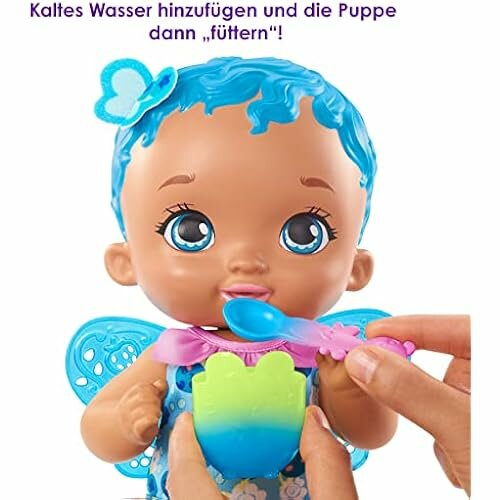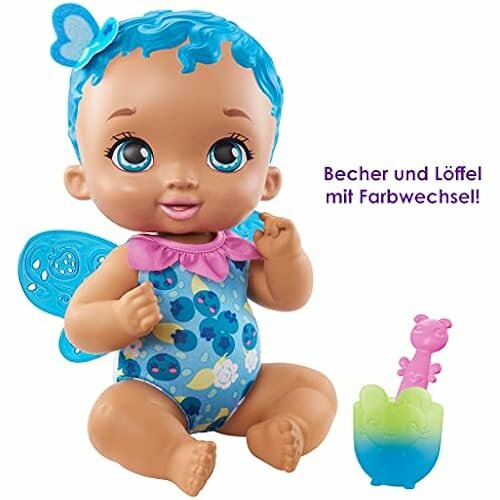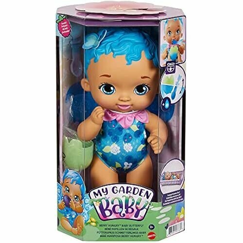 Пупс "Вкусная черничка" My Garden Baby (скрывает множество сюрпризов. Дети будут в восторге от съемных пластиковых крылышек, удивительных волос и сладкого черничного аромата. Куклу My Garden Baby можно "кормить" с ложечки и чашки - а если добавить немного холодной воды, они изменят цвет!