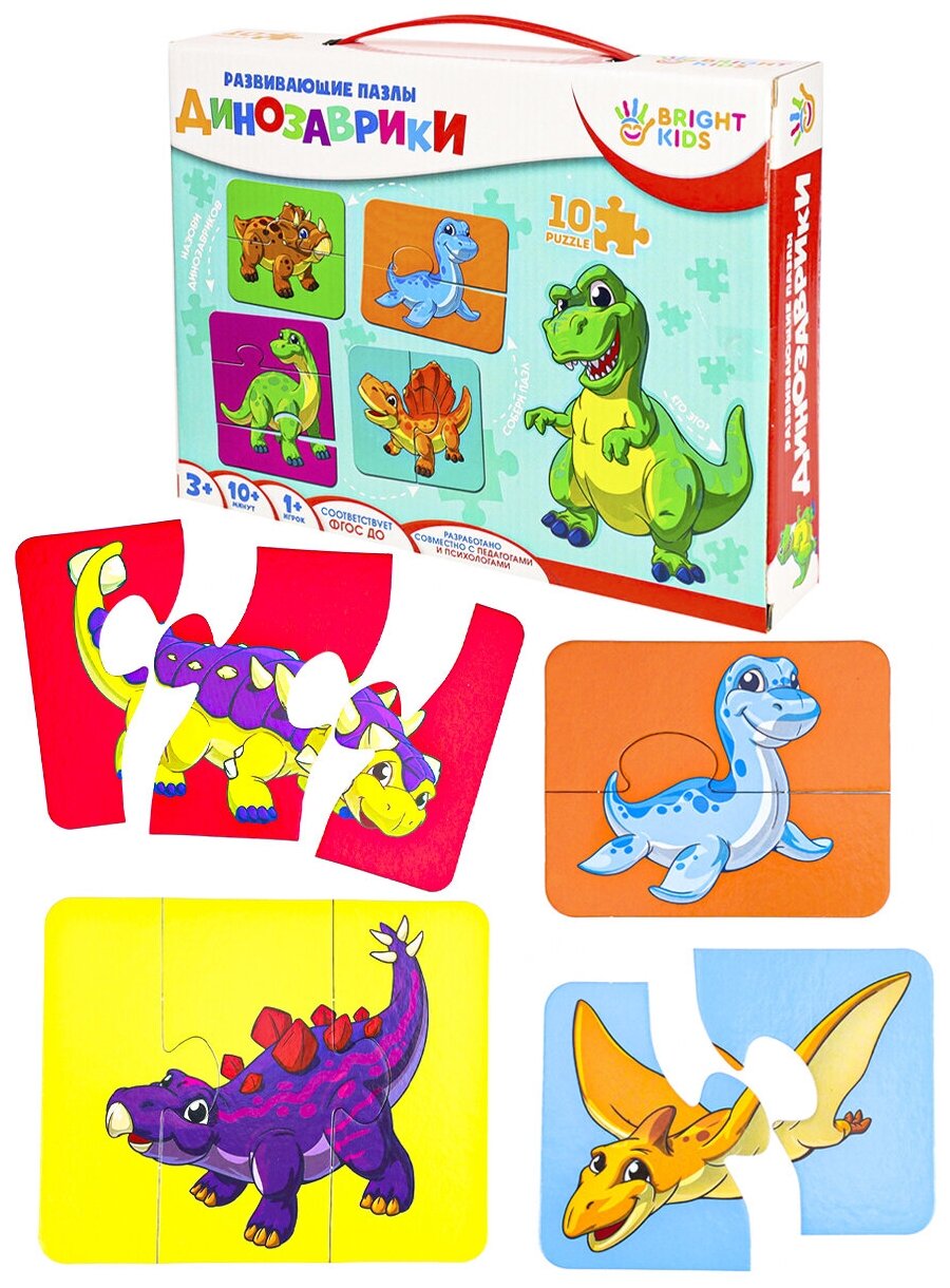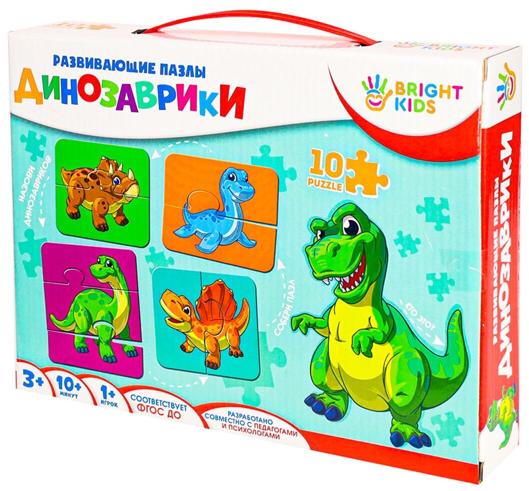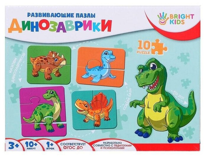 Дайте малышу собрать каждый пазл. Одновременно разговаривайте с ним, обсуждайте, какого именно динозаврика он собрал, пусть малыш придумает, где жил этот динозавр, чем они питался,какой у негохарактер