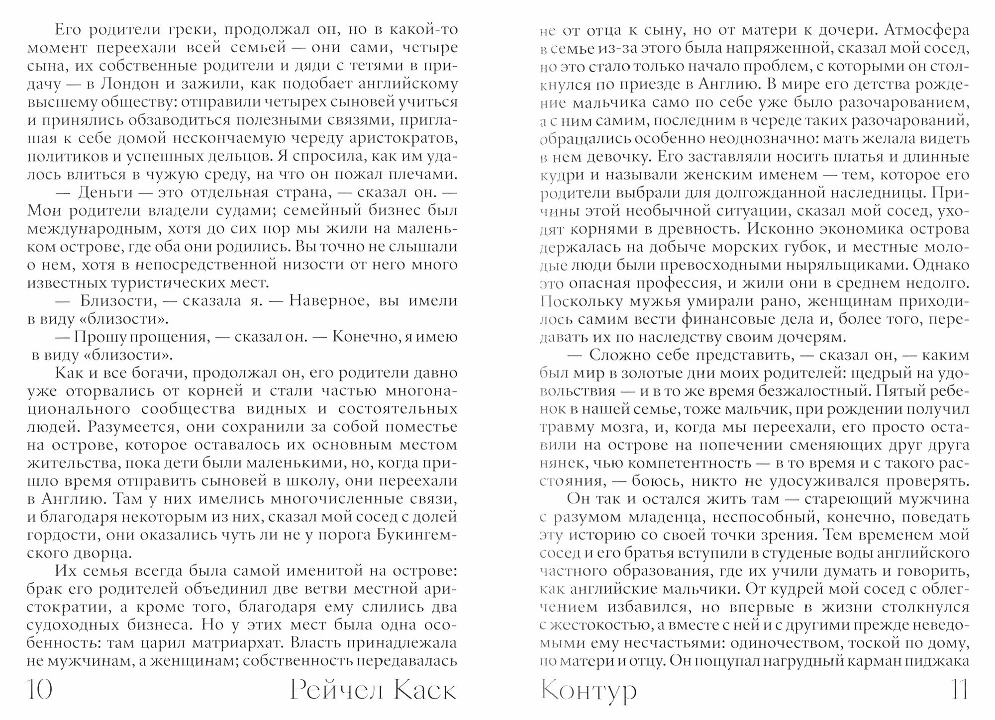 Роман современной канадско-британской писательницы Рейчел Каск (род. 1968), собравший множество премий, состоит из десяти встреч и разговоров. Нестерпимо жарким летом в Афинах главная героиня, известная романистка, читает курс creative writing. Ее новыми знакомыми и собеседниками становятся соседи, студенты, преподаватели, которые охотно говорят о себе - делятся своими убеждениями, мечтами, фантазиями, тревогами и сожалениями. На фоне их историй словно бы по контрасту вырисовывается портрет повествовательницы - женщины, которая учится жить с сознанием большой потери. "Контур" - первый роман трилогии, изменившей представления об этой традиционной литературной форме и значительно расширившей границы современной литературы. Впервые на русском.