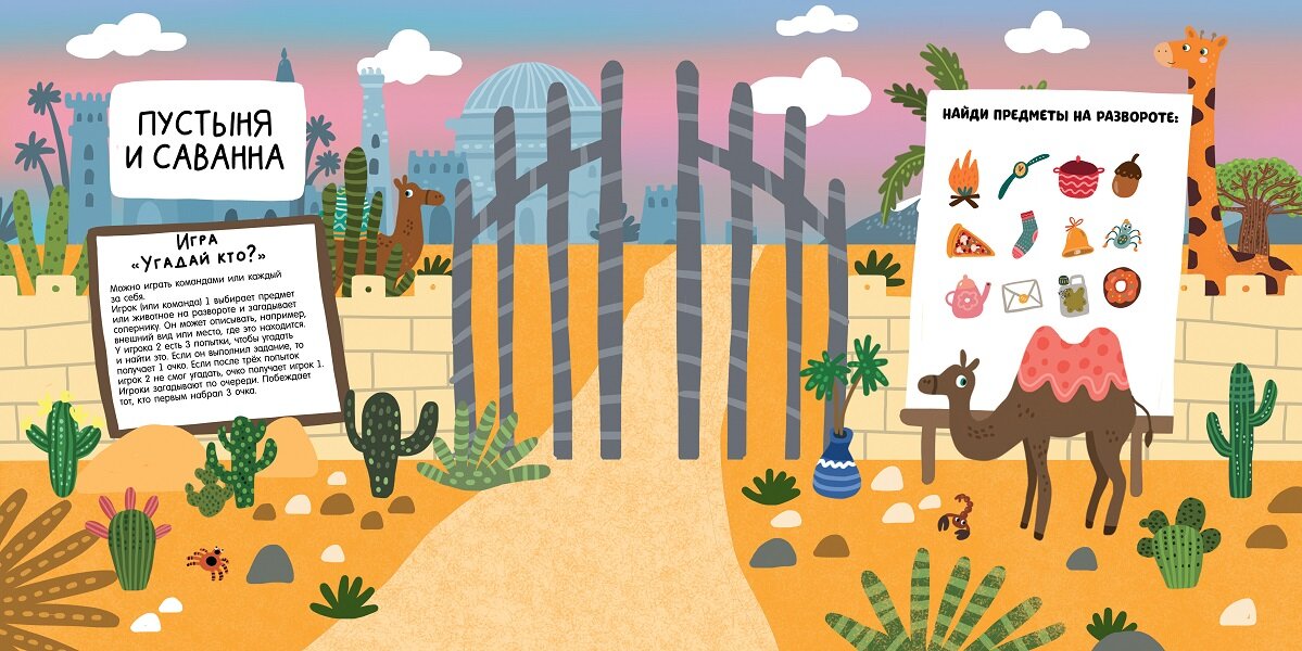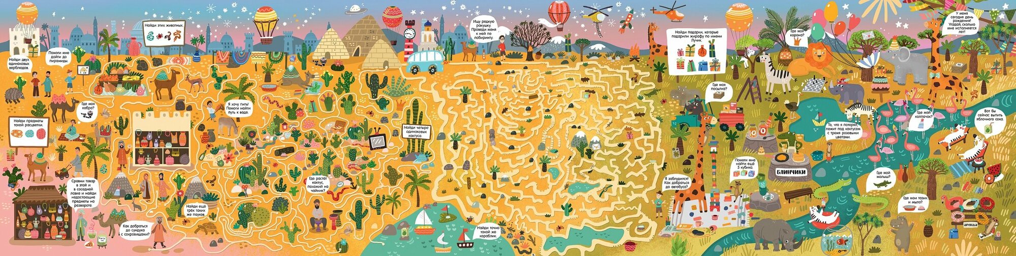 Отправляйтесь в путешествие по лесу, джунглям, саванне и пустыне, побывайте на Северном и Южном полюсах и познакомьтесь с животными, которые там обитают! "Гигантская книга "найди и покажи". Животные" - это огромная книжка-раскладушка с красочными панорамными картинками. Каждый разворот - целый метр игр и весёлых заданий.