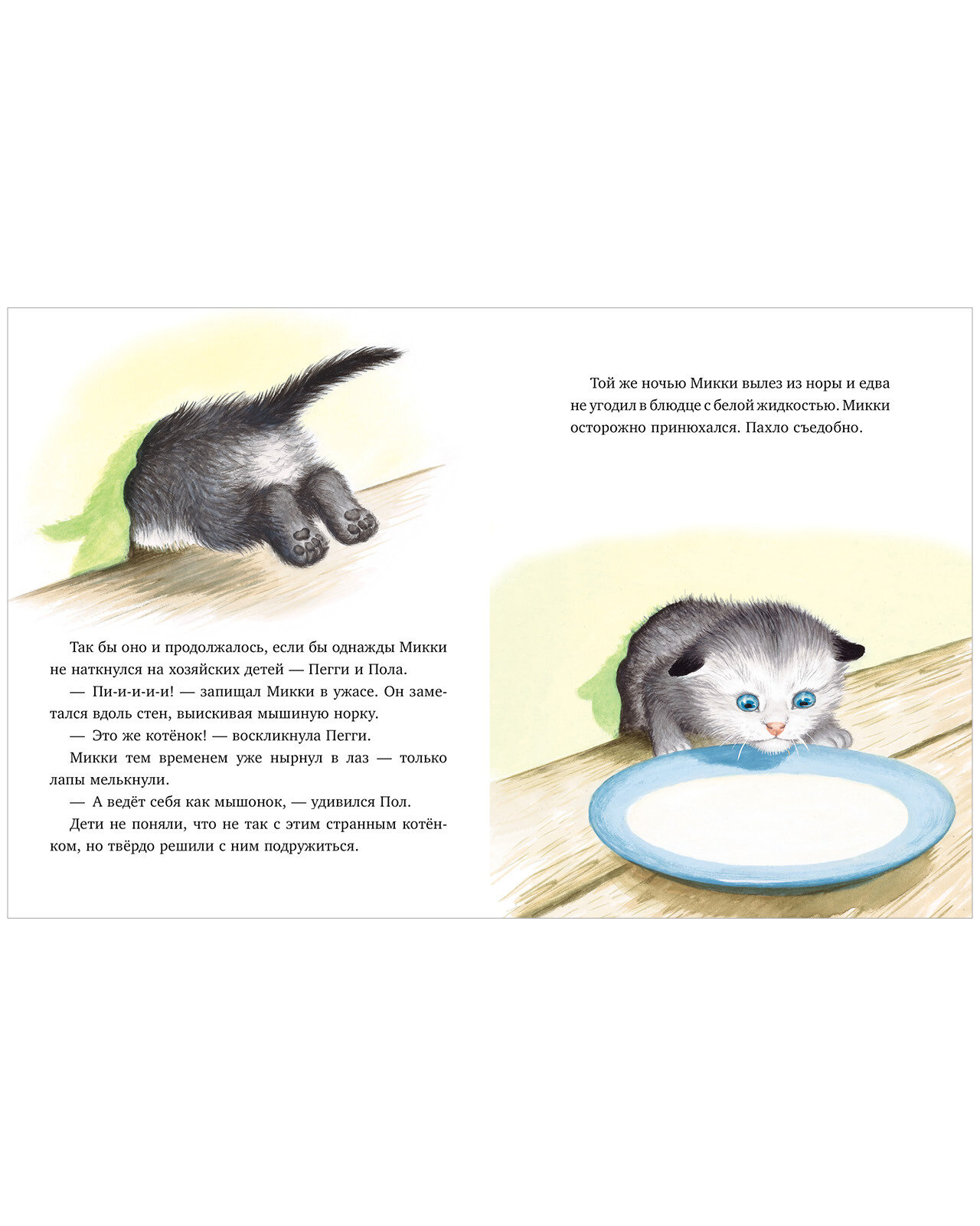 Серия "Золотая библиотечка малыша" - это проверенная временем классика для самых маленьких читателей. В неё вошли лучшие книги детских авторов и иллюстраторов. Однажды мама Мышкинс нашла на пороге их садовой норки новорождённого котёнка. Так в семействе Мышкинс появился ещё один сынок, а котёнок Микки обрёл имя и семью. Микки рос примерным и осторожным, как его новые братик и сёстры. Он сторонился людей и ловко дурачил хозяйскую кошку. Но сможет ли кот всю жизнь оставаться мышью?