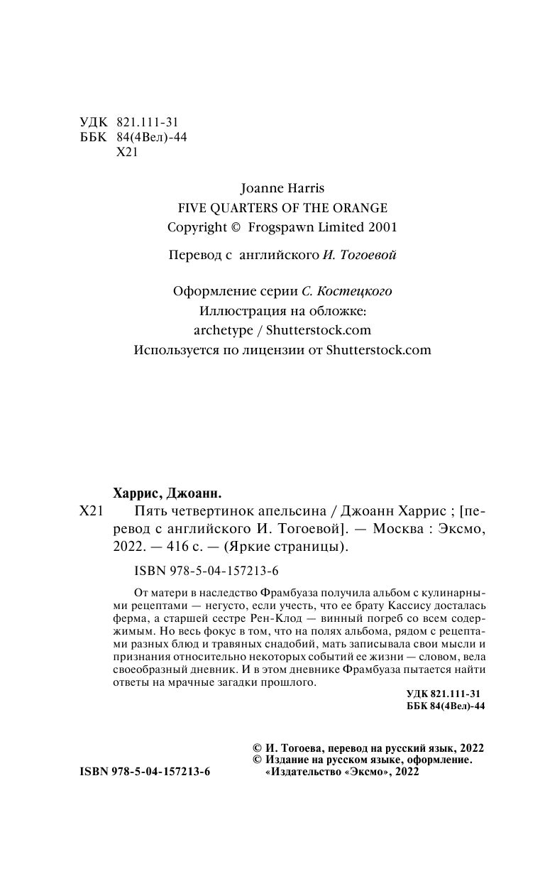 Пять четвертинок апельсина (Джоанн Харрис); Эксмо, Редакция 1, 2024