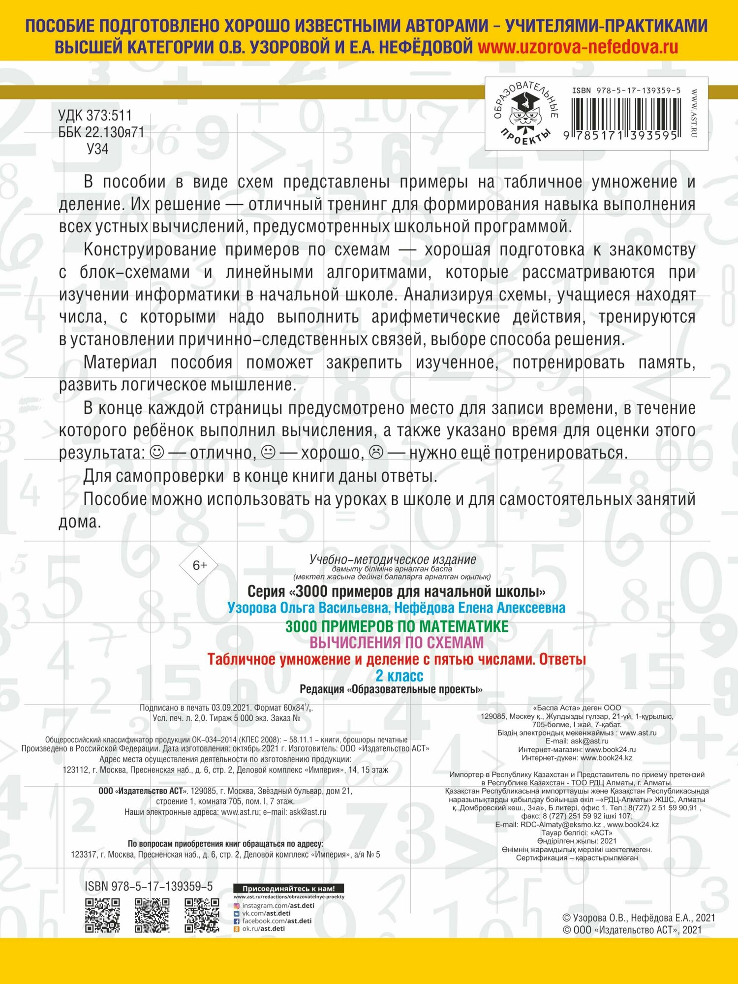 3000 примеров по математике. Вычисления по схемам. Табличное умножение и деление с пятью числами. Ответы. 2 класс (Нефедова Елена Алексеевна; Узорова Ольга Васильевна); ИЗДАТЕЛЬСТВО "АСТ", 2021