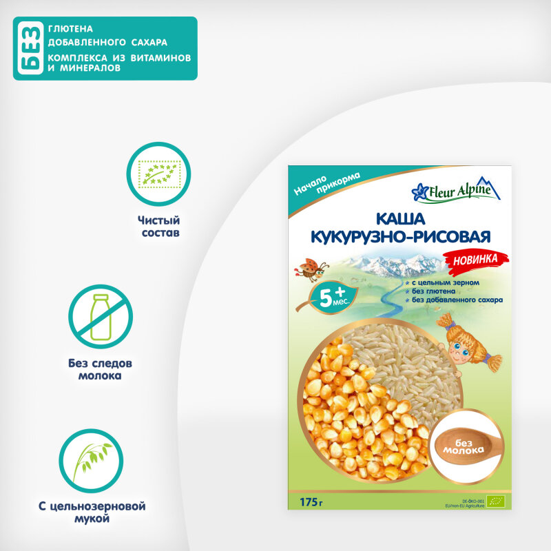 Каша Fleur Alpine Кукурузно-Рисовая безмолочная с 5 месяцев 175г