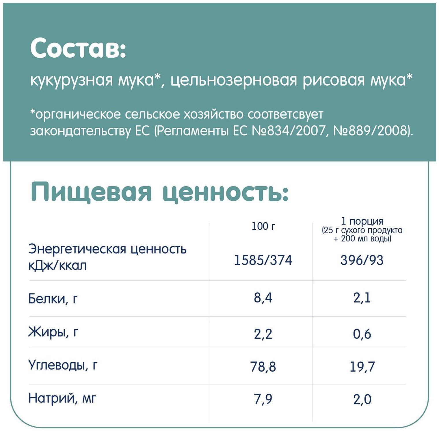 | Меры предосторожности | Проконсультируйтесь с педиатором перед введением нового продукта. Не варить. |