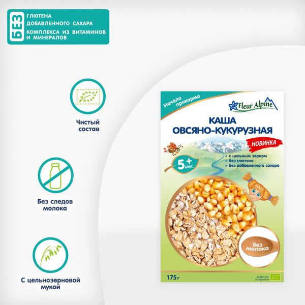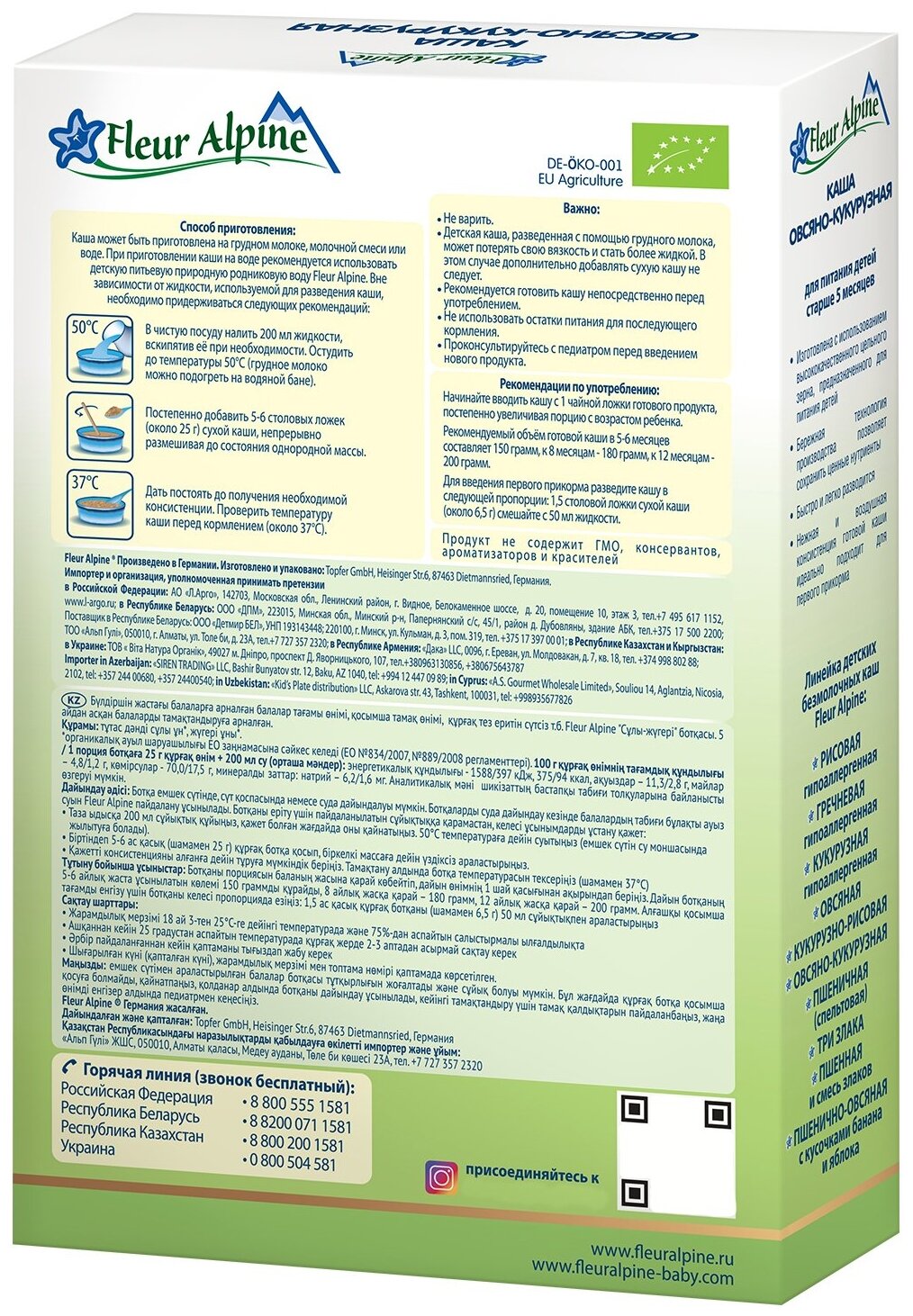Каша Fleur Alpine Овсяно-Кукурузная безмолочная с 5 месяцев 175г