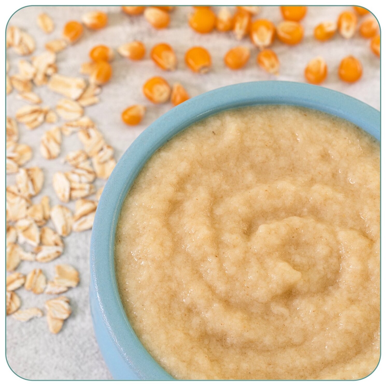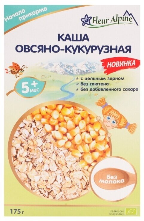 Овсяно-кукурузная каша Fleur Alpine подходит для начала прикорма. Разводится легко, быстро и без комочков. Нежная, воздушная консистенция готовой каши в виде «сугробиков» напоминает снег, который ложится на поверхность небольшими пышными неровностями. Вкус – злаковый, в котором преобладает овсяная составляющая. Каша из двух злаков обладает повышенной питательной ценностью по сравнению с монокомпонентной, поэтому особо подходит малышам с недобором веса.
