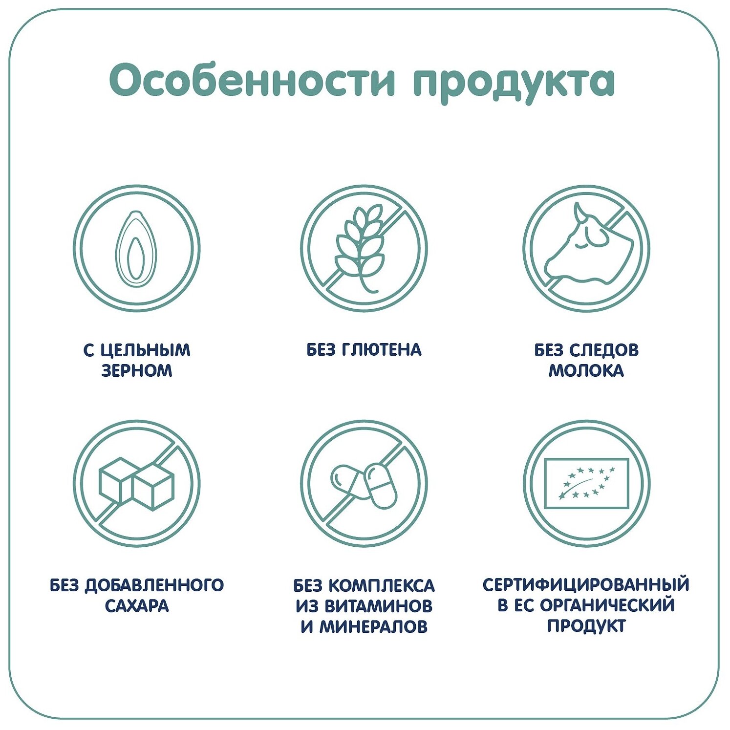 | Состав | Цельнозерновая овсяная мука, кукурузная мука. Органическое сельское хозяйство соответствует законодательству ЕС (Регламенты ЕС №834/2007, №889/2008). |