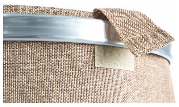 крышки нет, хотя в описании к товару казано её наличие - тут обман, так что бельё после активного использования с запахом сюда лучше не класть, если нет чего-то, чем его можно накрыть. Алюминиевый диск, придающий верху корзины условную жёсткость, может оставлять следы на стенах (у меня под покраску, матовые, светлые).