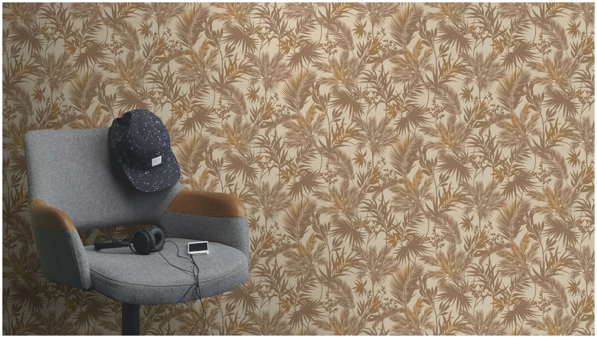Обои RASCH Kalahari 704136 Винил на флизелине (0,53*10,05) Бежевый/Коричневый, Листья