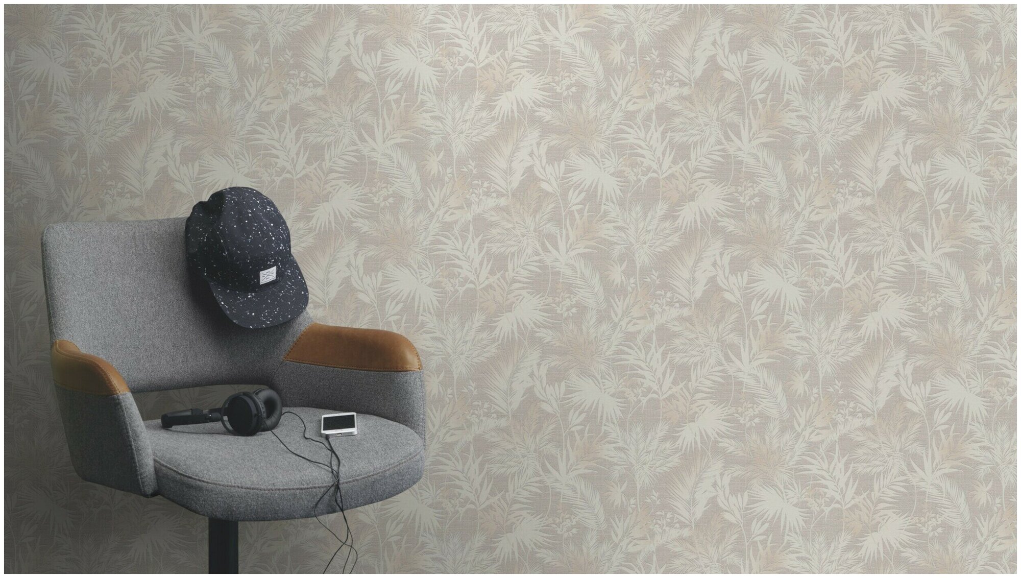 Модель: Kalahari 704129 Винил на флизелине (0,53*10,05) Серый, Листья