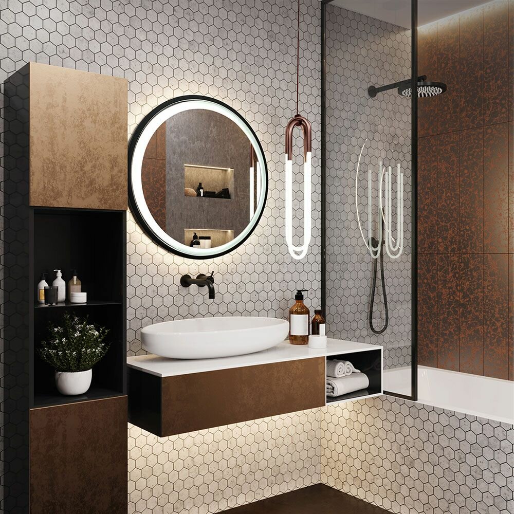 Зеркало Azario Манхэттен-лофт 70 LED-00002428 с подсветкой Черное с сенсорным выключателем