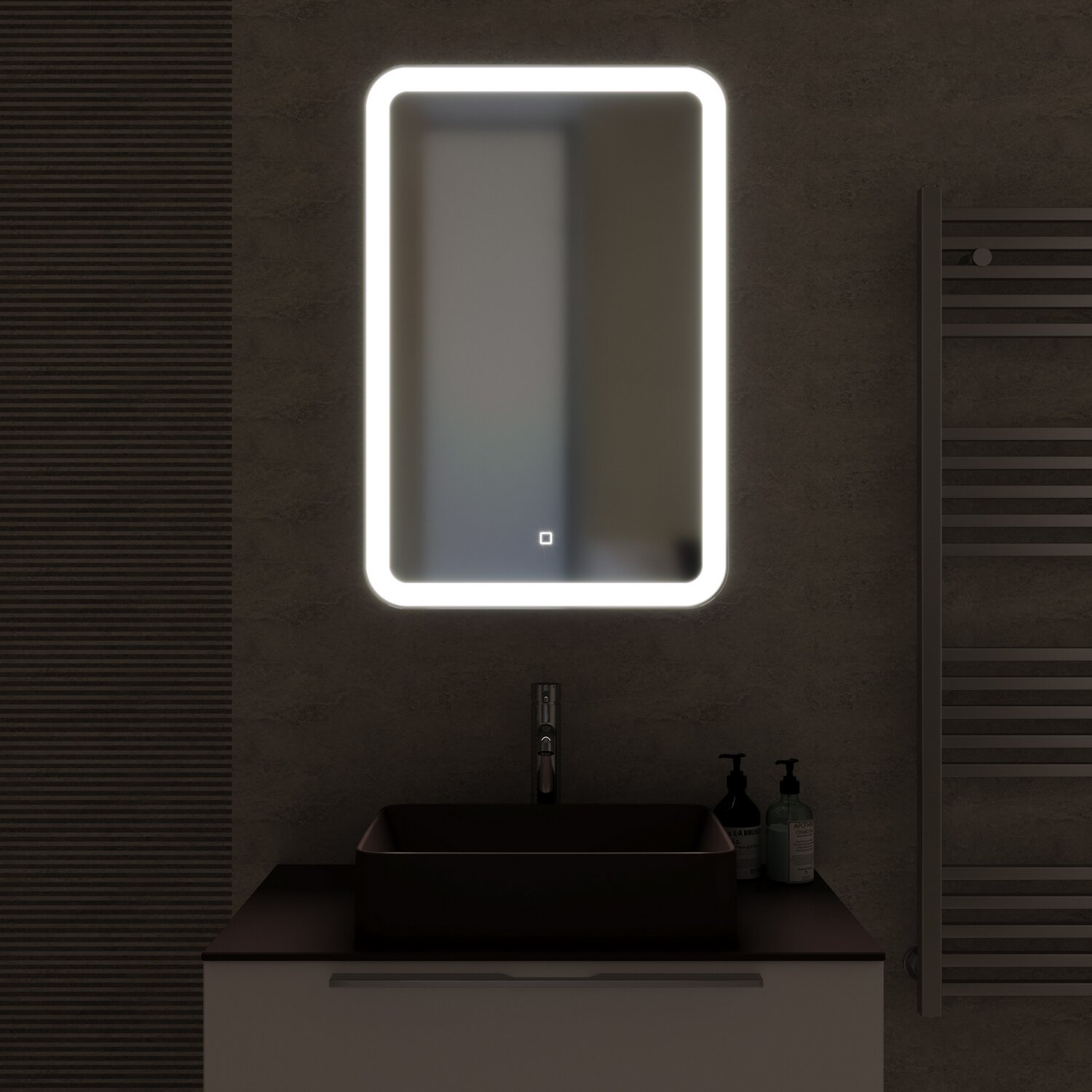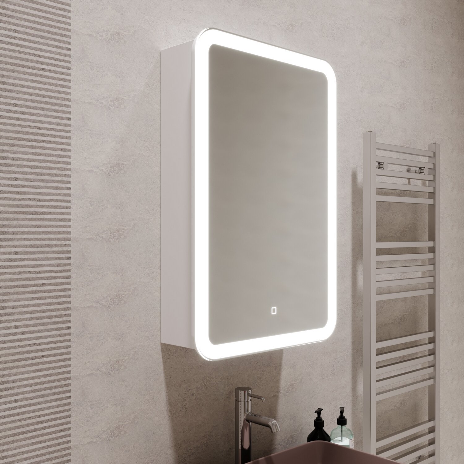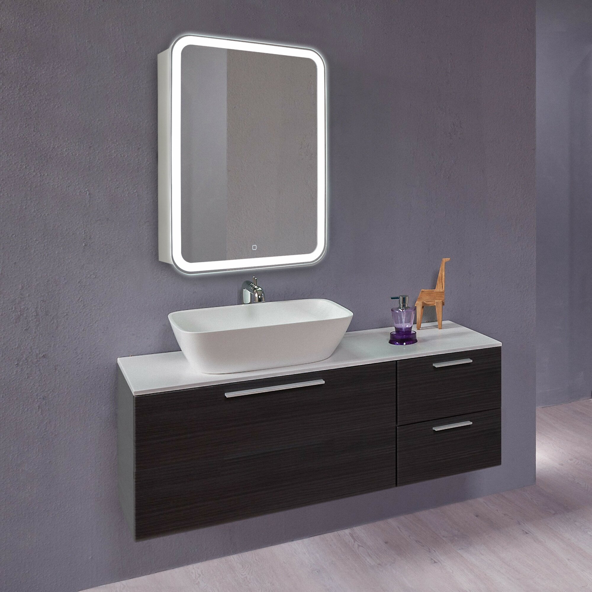 - Оснащение: подсветка, сенсорный выключатель.
