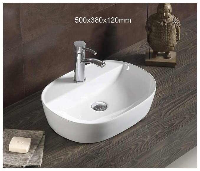Раковина накладная Azario 50.5х38.5х12 фаянс, цвет Белый (AZ2202). Монтаж: на тумбу, на столешницу. В комплекте поставки: раковина-чаша.