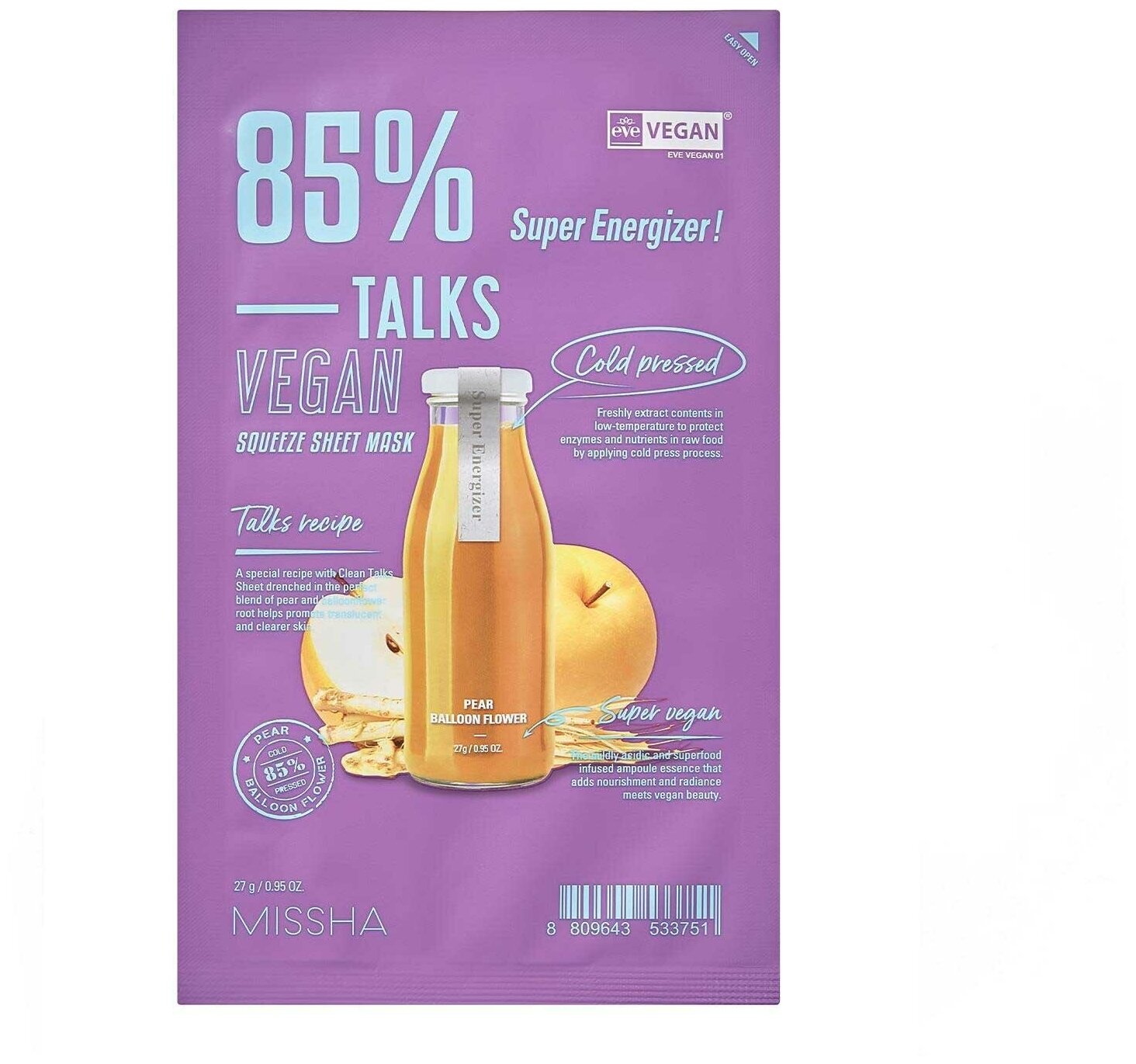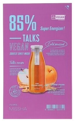 Листовая маска, пропитанная смесью суперпитательного сока груши и корня колокольчика придает коже питание и сияние.