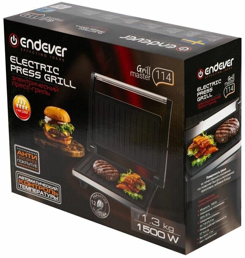 Благодаря мощности 1500 ватт, грили Endever можно использовать не только как бутербродницу и помощника для приготовления блюд для перекуса, но и как полноценный, при этом удивительно компактный, гриль для стейков или гамбургеров.