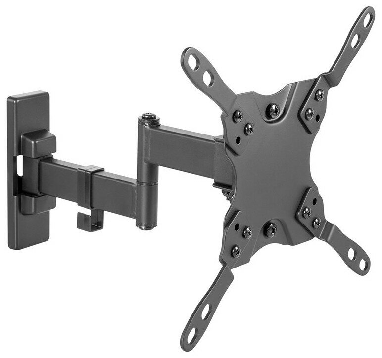 Компактный, функциональный и практичный наклонно-поворотный кронштейн для телевизоров или мониторов с диагональю до 43 дюймов – Harper . Конструкция из двух шарнирных соединений обеспечивает максимальную гибкость при позиционировании панели: можно регулировать расстояние от стены (50-275 мм), поворот (±90°), угол наклона (-12°+5°) и т.д. Вы сможете даже поправить горизонталь уже после монтажа крепления на стену (±3°). Harper рассчитан на весовую нагрузку до 20 кг и совместим со стандартами VESA от 75x75 до 200x200.