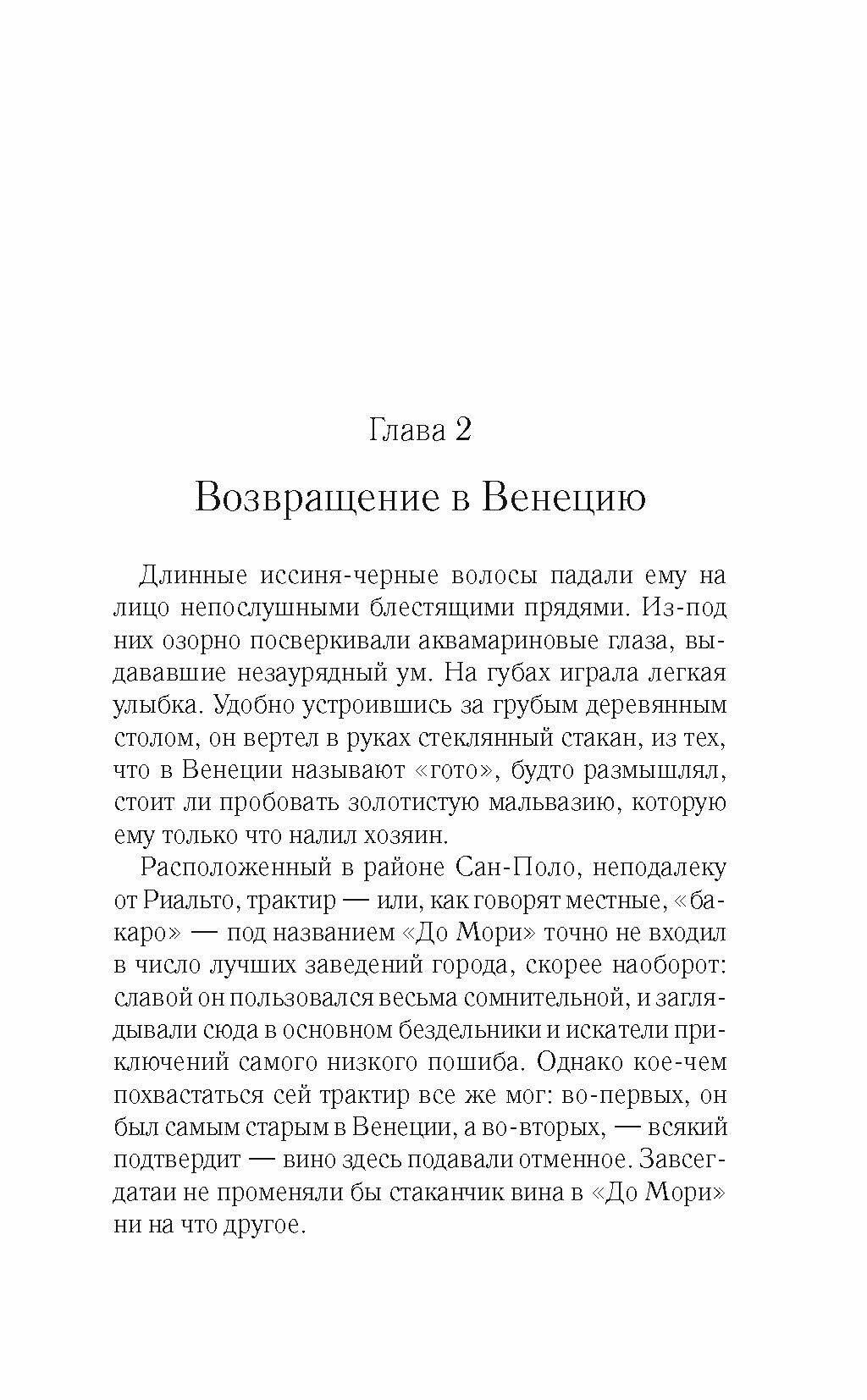 Как и любой герой, ведущий какие-то рискованные игры, Казанова в романе сталкивается с тайнами, неожиданными предательствами, попытками угадать, кто друг, а кто враг. Он сбегает по крышам, попадает в тюрьму, выпутывается из патовых ситуаций… В общем, приключений хватает. И все это — рай для эстетов и любителей Италии — в декорациях Венеции XVIII века с гондолами, карнавалами, театрами, дворцами и прочими красотами. Судя по информации об авторе, он сам живет неподалеку, обожает Венецию и изучил там каждый камешек. Это правда заметно.