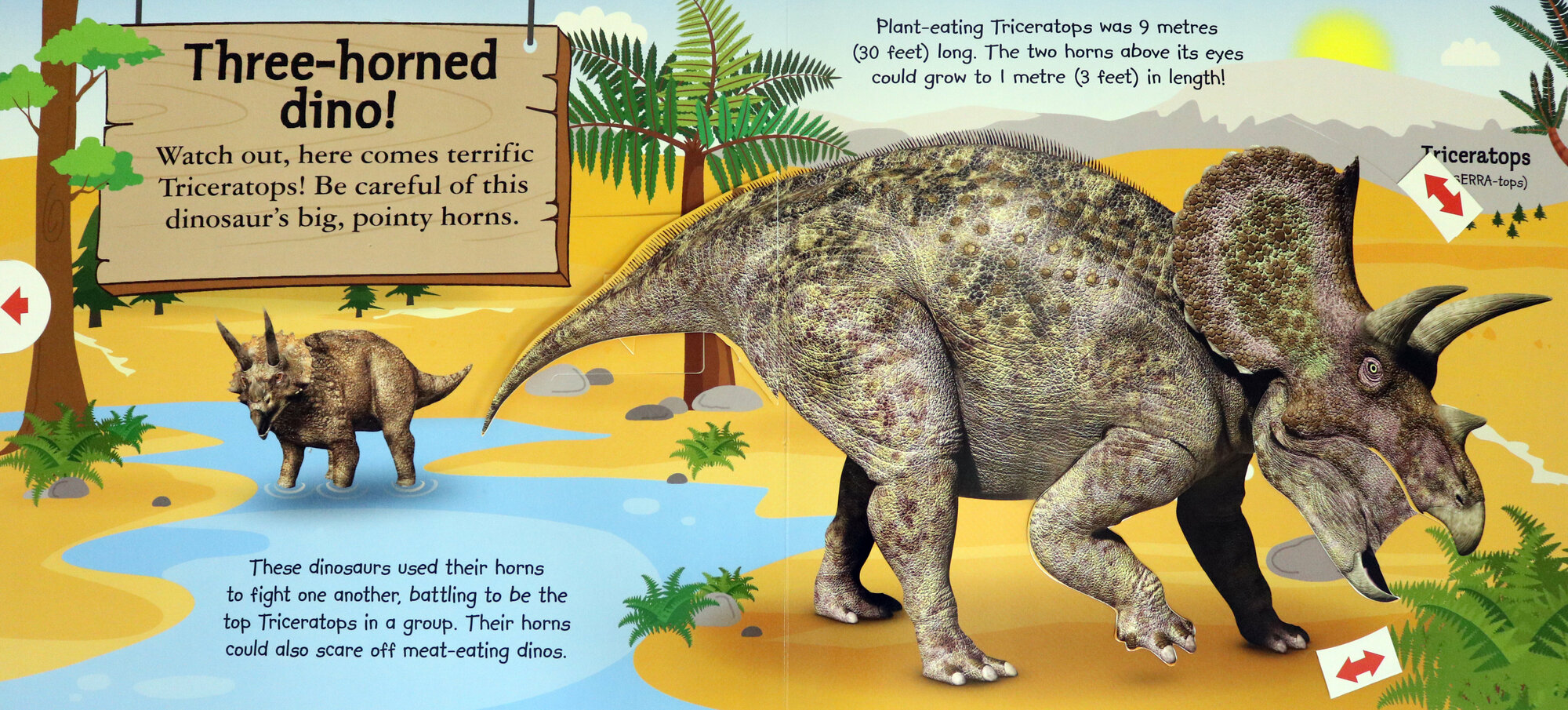 Delight young children with this interactive book. Lift the flaps and find out about the huge, plodding veggiesaurus or pull the tabs to see Triceratops open its mouth and flick its tail. Little readers can also play lift-the-flap spot the dino, turn a disc to see an awesome pterosaur dive through the air, and watch out for T. rex's huge, pop-up jaws!