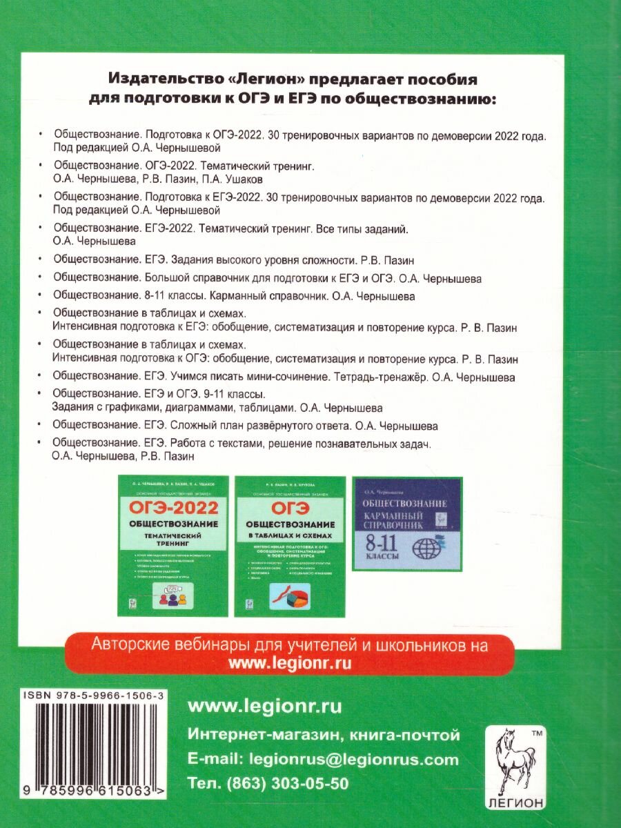 Обществознание ОГЭ - 2022 30 тренировочных вариантов по демоверсии 2022 года (Чернышева Ольга Александровна, Пазин Роман Викторович, Ушаков Петр Афанасьевич, Руденко Марина Николаевна); Легион, 2021
