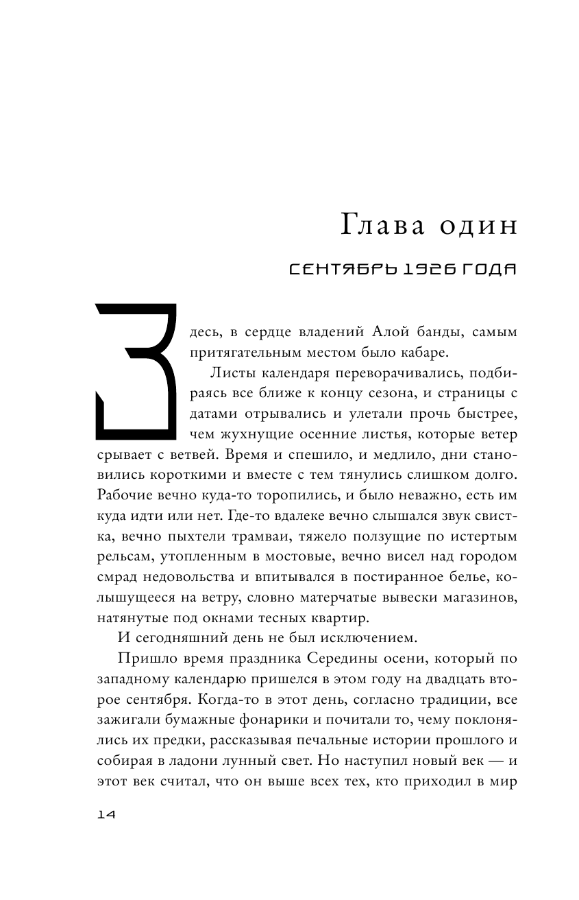 Очень любопытный роман. История Ромео и Джульетты в декорациях Шанхая начала 20-го века. Джульетта здесь китаянка, наследница криминального клана Цаев, а Ромео – русский))) из семьи русских эмигрантов. В отличие от оригинальной истории здесь есть не только любовная история, но и мистическая линия… На фоне развития отношений влюбленных в городе появляется монстр, который заражает Шанхай странным вирусом. Мне понравилось это необычное сочетание классического сюжета, экзотической декорации и мистики. Книга захватывает.
