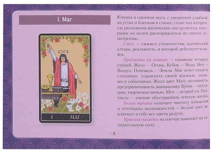 Описанные Мартином Вэлсом расклады Таро, значения карт и символов просты и понятны и позволят вам делать точные прогнозы во многом интуитивно, не заучивая трактовки.