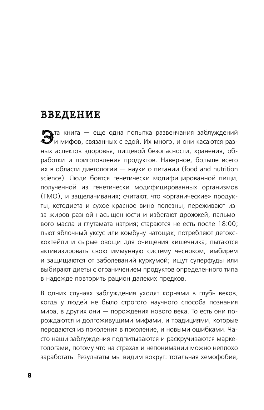 Во-вторых, что отметила лично я, автор не разливается по одной теме на 10-15 страниц, как иногда любят делать некоторые. Очень коротко, емко, главное понятно и без лишней информации, которая утяжеляет вес. И сам слог автора довольно приятный, даже есть где посмеяться. Да и в целом сама задумка ему удалась: разобрать известные и не особо распространенные байки, царящие вокруг еды, продуктов, способов их употребления и хранения, и грамотно объяснить, что надо, а что нет.