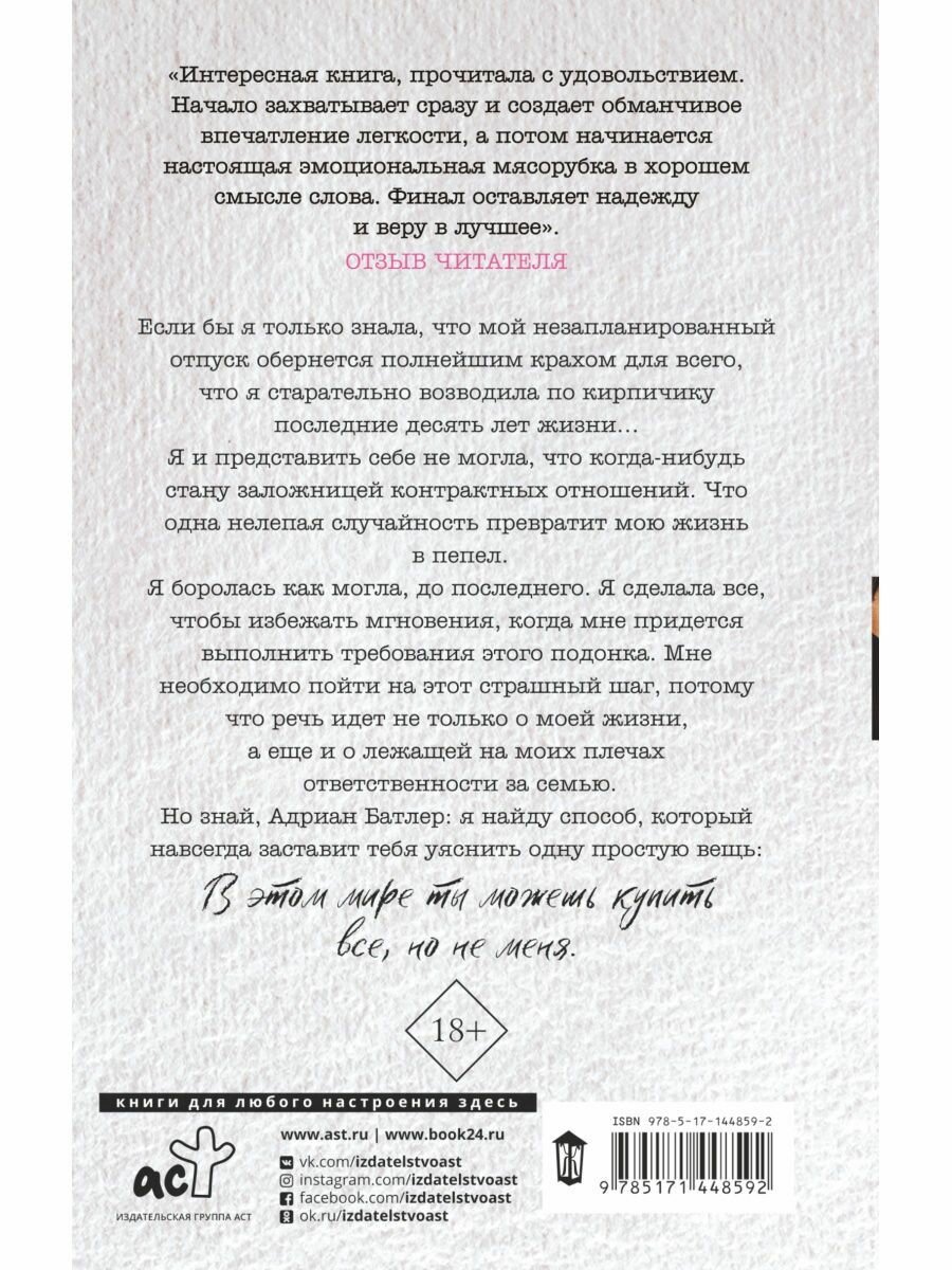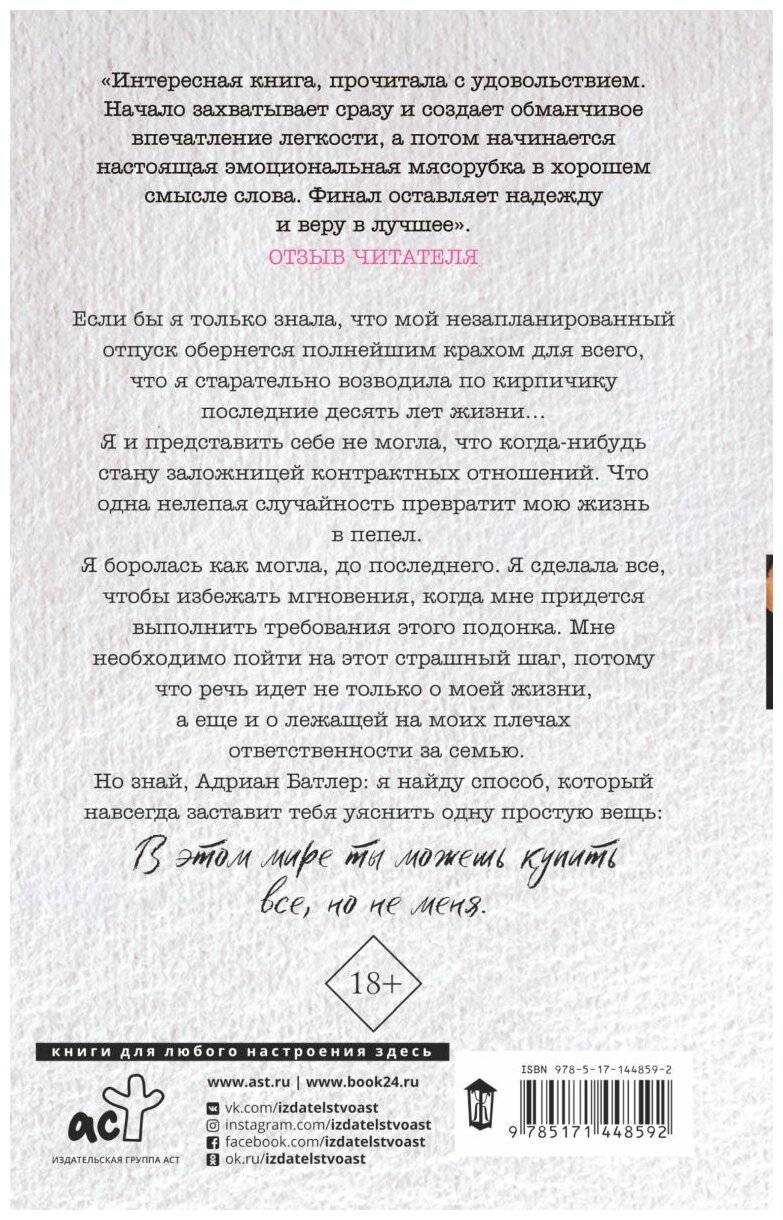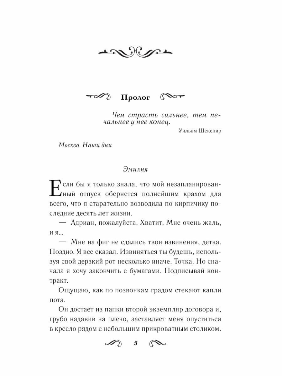 Моя самая любимая история написанная этим чудеснейшим дуэтом! В этой книге есть всё, что я люблю в современных любовных романах: настоящее противостояние двух сильных личностей с твёрдым характером, океан невероятно разнообразных эмоций, таких жгучих, острых и ярких, которые с одной стороны разрывают тебя на части, выворачивают душу буквально наизнанку, а с другой дают этот толчок, этот стимул продолжать бороться, стоять на своём! Есть вот этот огонь, это пламя, которое живёт в героях и ты чувствуешь его на каждой странице, в каждой строчке, оно прям как будто придаёт сил, наполняет тебя своим жаром, заставляя ощущать как своё собственное! Цепляющая за самое глубинное и больное что есть в сердце, безумно пылкая, азартная и бурная в своих красках, в своей многогранности чувств и эмоций! Залезающая тебе под кожу и кипятящая твою кровь, которая в процессе чтения буквально бурлит в венах, захватывающая твоё дыхание и заставляющая сердце бешено бежать галопом в твоей груди и биться о рёбра! Я пытаюсь передать словами свои ощущения, но понимаю что это просто невозможно, настолько они сильные, настолько переполняющие меня до краёв! Всё очень динамично, очень чувственно и страстно, и болезненно и страшно! Моя любовь к этой истории возросла в миллионы раз и полностью затопила моё сердце, мою душу!!! -