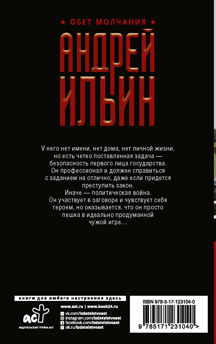 Удивительная книга! Благодаря этой книге, я познакомилась с творчеством Андрея Ильина! Захватывающий сюжет, погружаешься в книгу с первых страниц! Изначально думаешь, для чего все эти жертвы главного героя, зачем столько испытаний,вопросов очень много, на протяжении всего времени сохраняется интрига, которая ещё больше проявляет желание прочесть книгу прямо сейчас! Первая серия книг "обет молчания" была выпущена ещё в 96 году, и уже тогда эта книга была очень популярна. На сегодняшний день эта книга может показаться немного наивной, но все также не оставит читателя равнодушным!