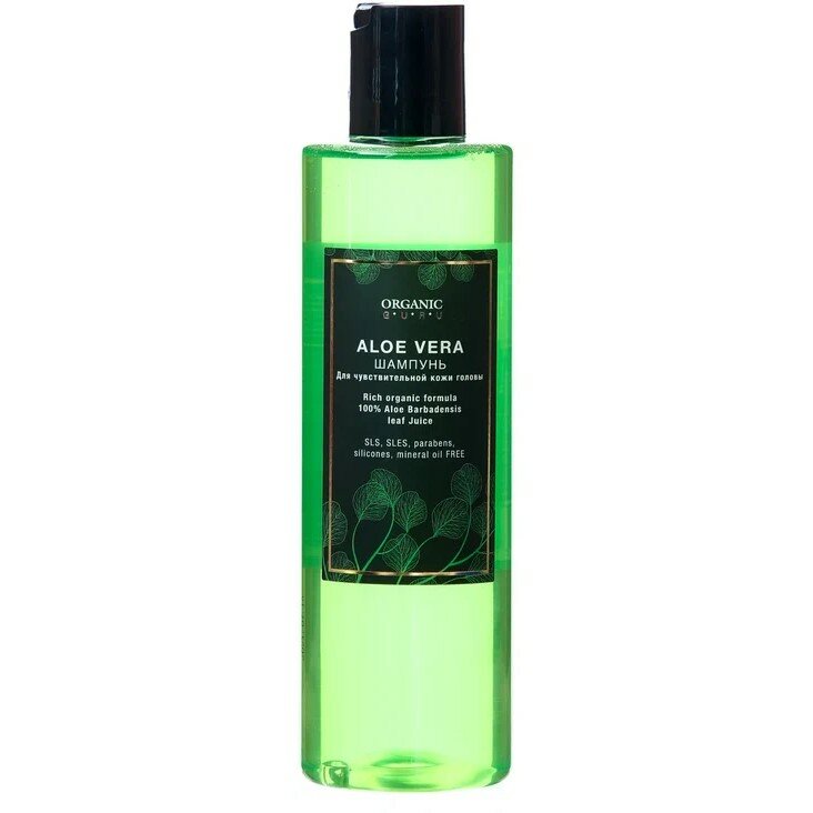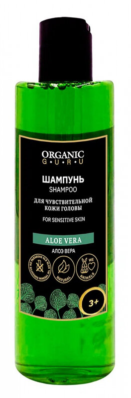Шампунь для чувствительной кожи головы "ALOE VERA" состоит из 90% натуральных ингредиентов. Специально разработанная линейка для чувствительной кожи, основа которой состоит из сока Алое Барбадосского (Aloe Barbadenis), идеально зарекомендовала себя на рынке. В сочетании с натуральными экстрактами и маслами, продукты данной линейки увлажняют, снимают раздражения и обеспечивают защитой от внешних факторов. Формула шампуня на соке алоэ создана специально для чувствительной кожи головы. Бережно очищает волосы, успокаивает кожу, предотвращает риск проявления аллергической реакции. Ухаживающий биокомплекс алоэ, жожоба, касторового масла с экстрактами крапивы, календулы, черной смородины, шиповника и репейника придает волосам здоровый вид и блеск. Подходит для ежедневного использования для всех типов волос. Не содержит сульфатов, силиконов, парабенов.С Заботой, Organic Guru!Способ примененияНанести небольшое количество шампуня на влажные волосы и кожу головы, вспенить массажными движениями и смыть. После применения шампуня рекомендуется использовать бальзам-ополаскиватель или масло для волос Organic Guru.