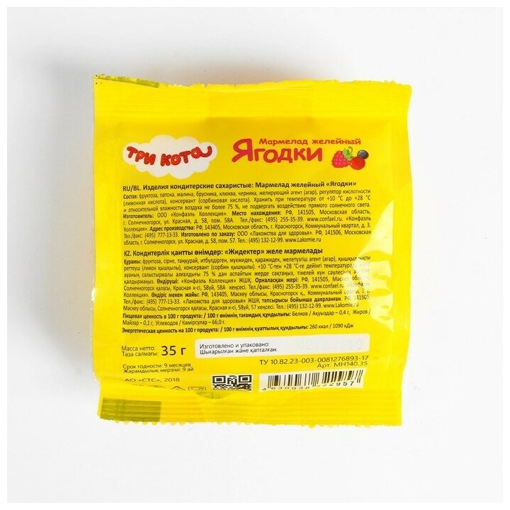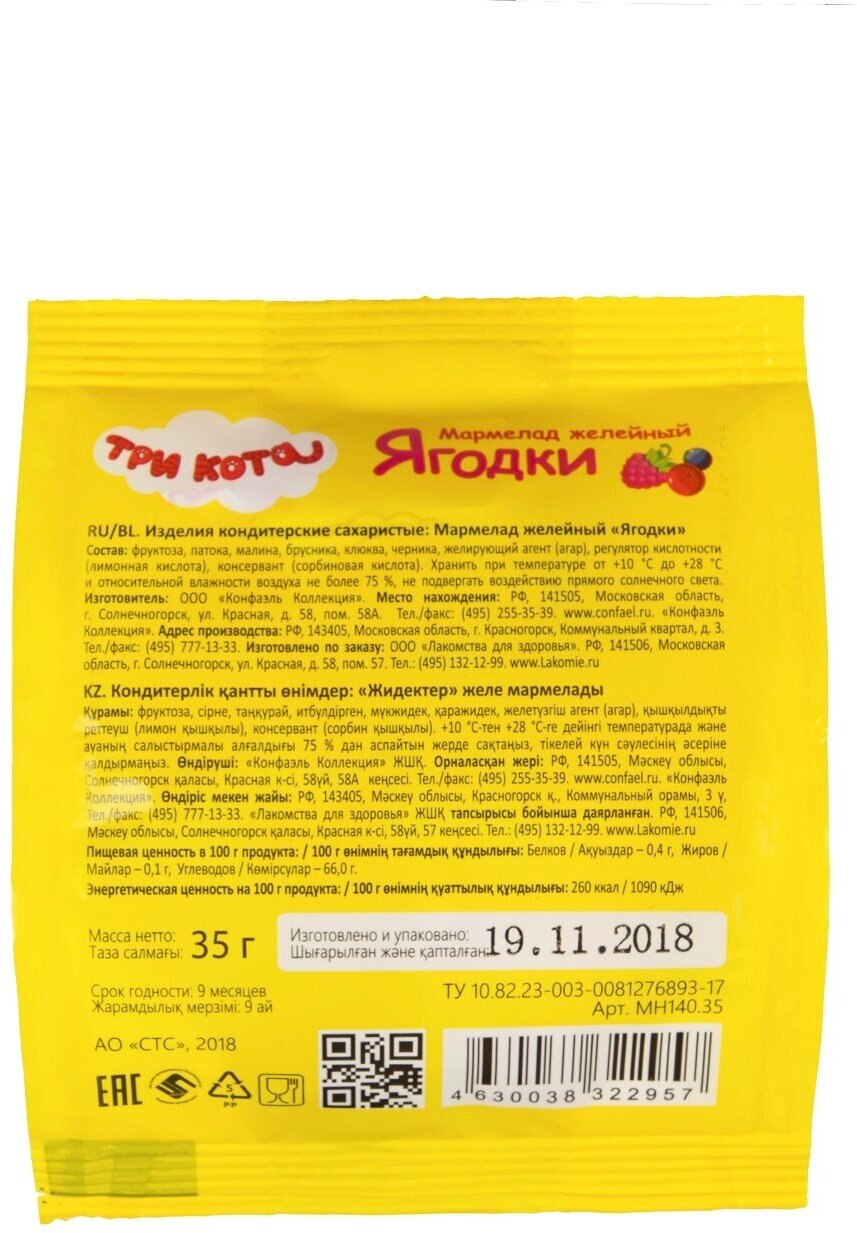 Мармелад желейный Ягодки Три кота 35г ООО Конфаэль Коллекция (1617556)