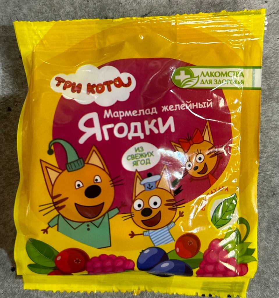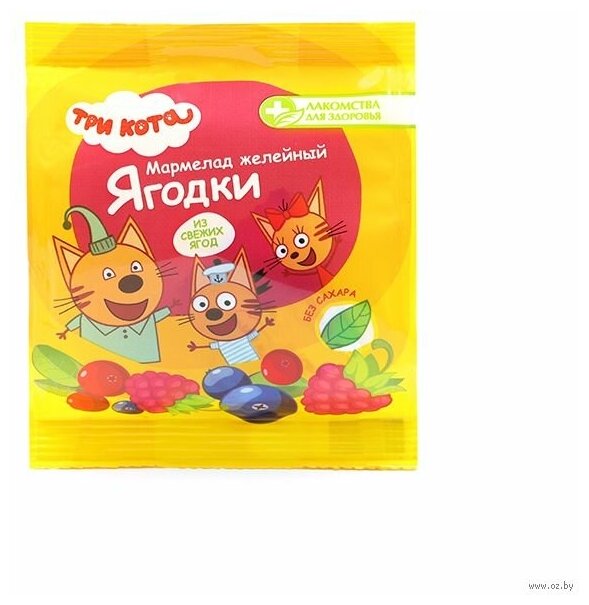 Мармелад Три кота лучший выбор для маленьких зрителей и их родителей! Натуральный состав, богатый растительной клетчаткой, без вкусовых добавок и красителей. Без добавления сахара.