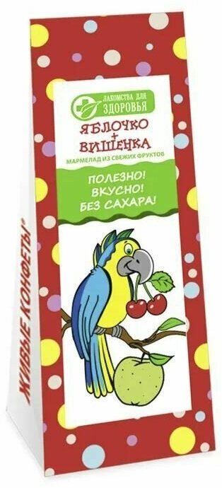 | Состав | Фруктоза, патока, вишня, яблоко,желирующий агент (агар), регулятор кислотности (лимонная кислота), консервант (сорбиновая кислота), ароматизаторы натуральные "Яблоко", "Вишня" |