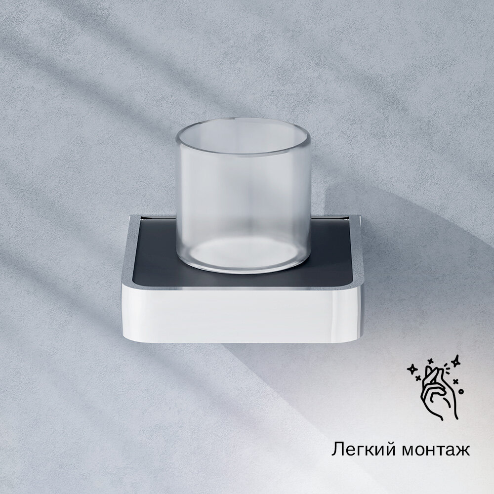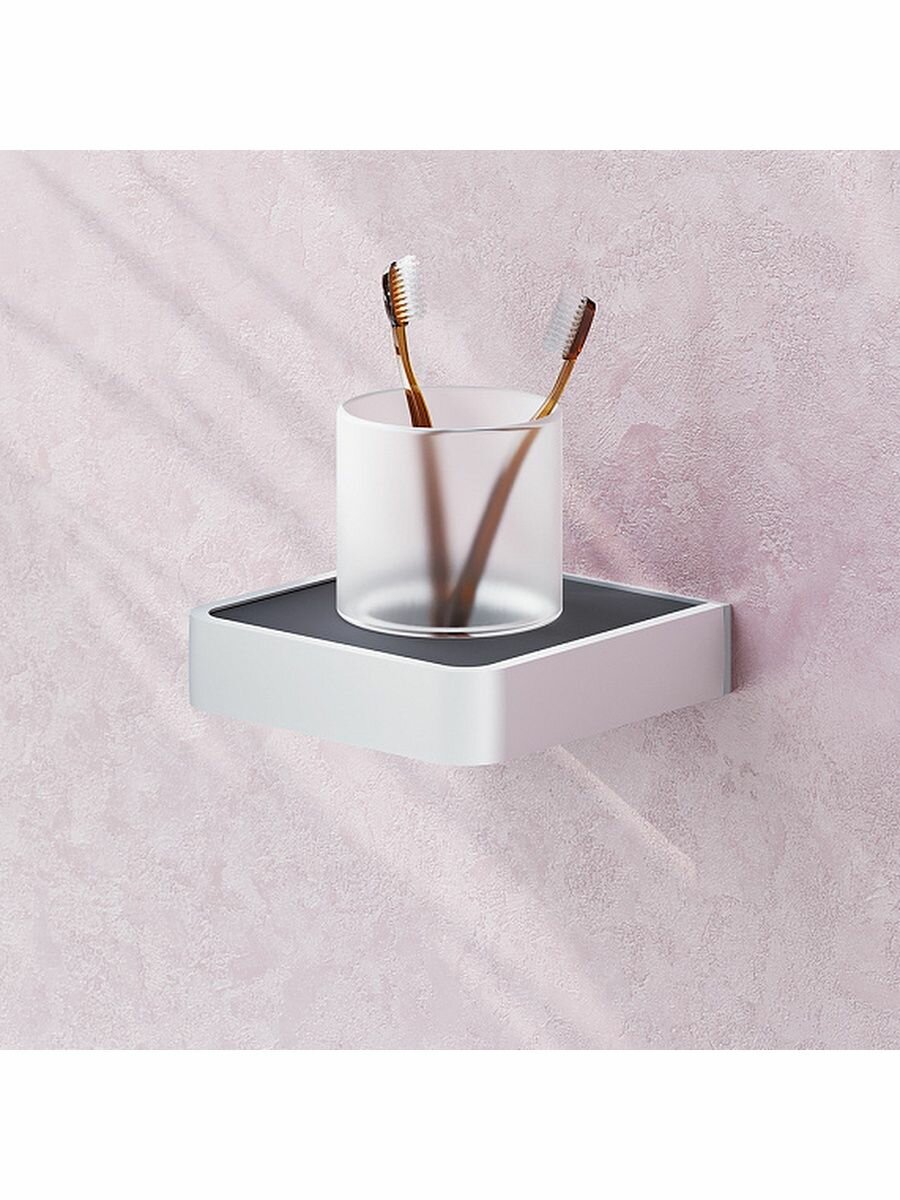 Стакан Damixa Jupiter не только позволит удобно разместить зубные щетки в зоне умывания, но и сделает акцент на модном дизайне интерьера. Аксессуар имеет чашу из стекла и основание из алюминия. Сочетание элементов черного и серебристого цвета обеспечивает подвесной конструкции стильный вид.