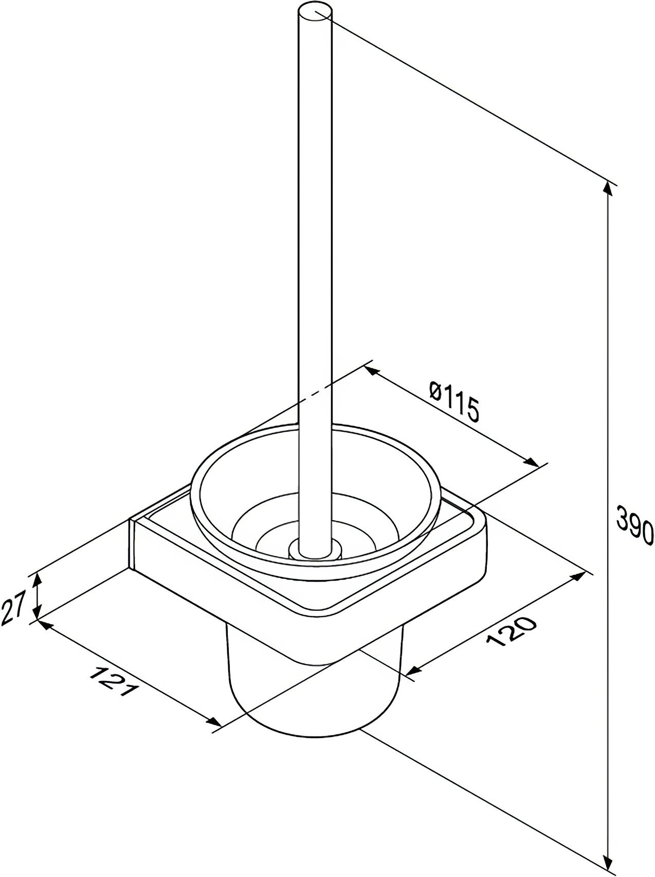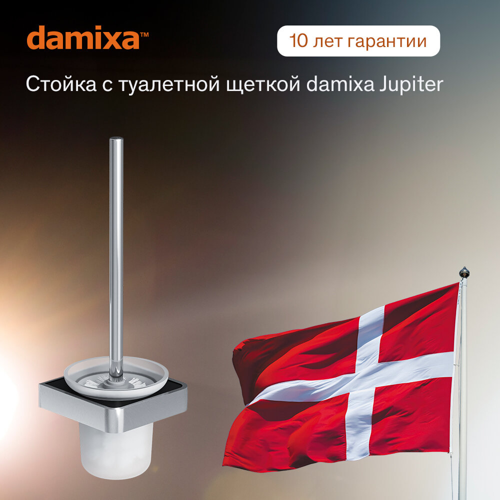 Damixa Jupiter - подвесной ершик с изысканным скандинавским дизайном и массивным профилем. Аксессуар имеет металлическую ручку, базу и рамку из алюминия.