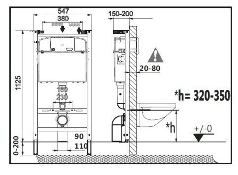 | Габариты инсталляции | 1125x547x150 |
